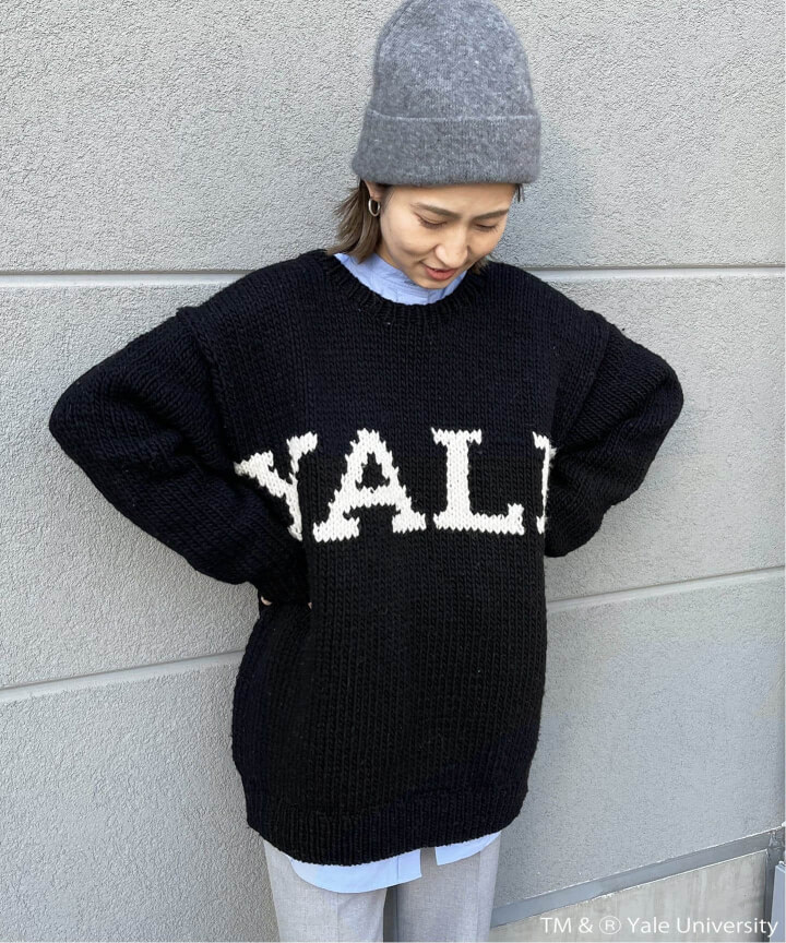 落ち着きをもたらすブラックスウェットで大人気の「YALE」シリーズは、あえて黒ニットを選んで変化球。毎日使えるスマホポシェットも、飽きのこないブラックがベター。