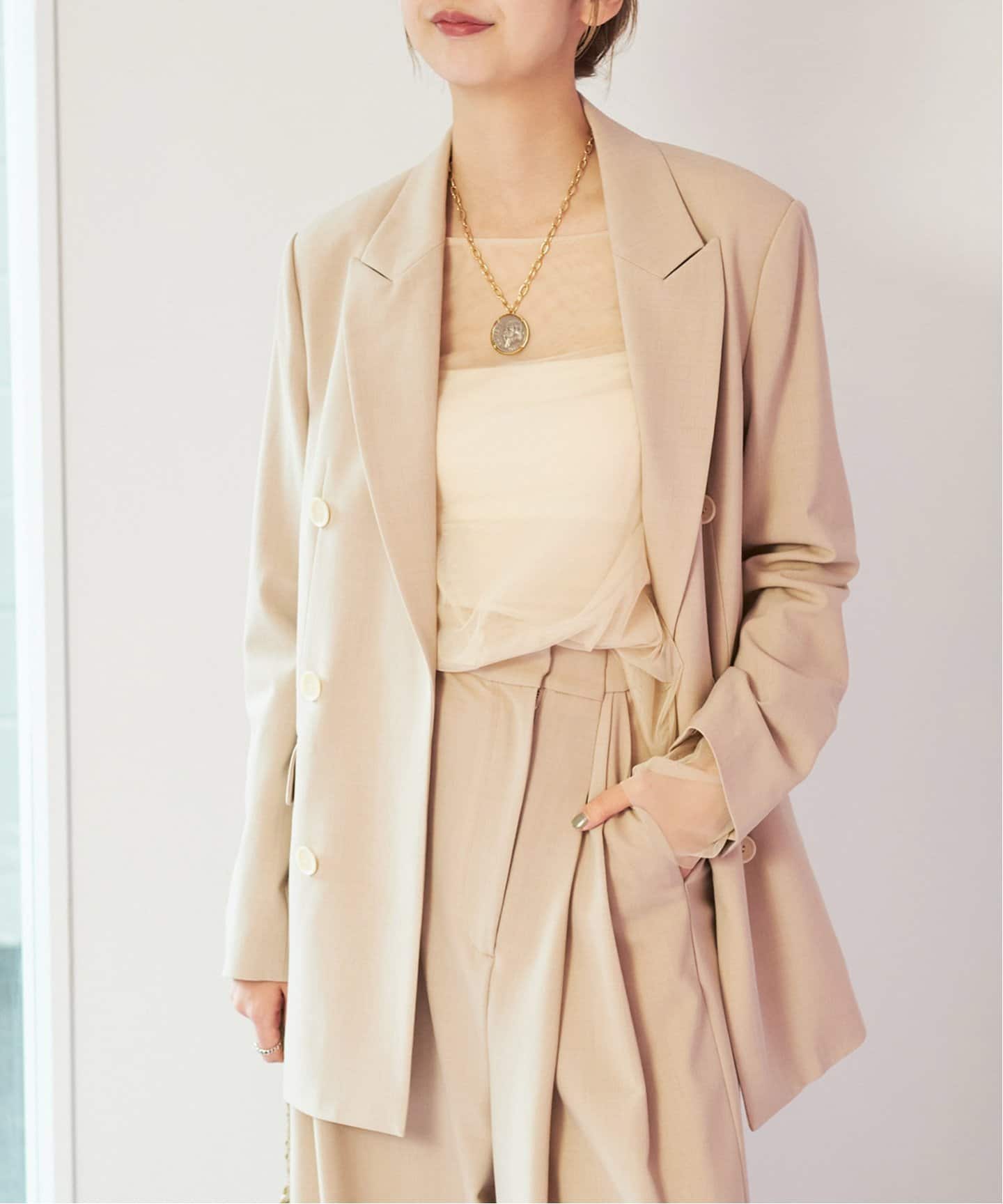 大人トラッドなベージュ春のトラッドコーデにマストなスプリングコートは、コンテンポラリーな雰囲気のテントシルエットをセレクト。ベージュ×グリーンのリバーシブルトートバッグもおすすめ。
