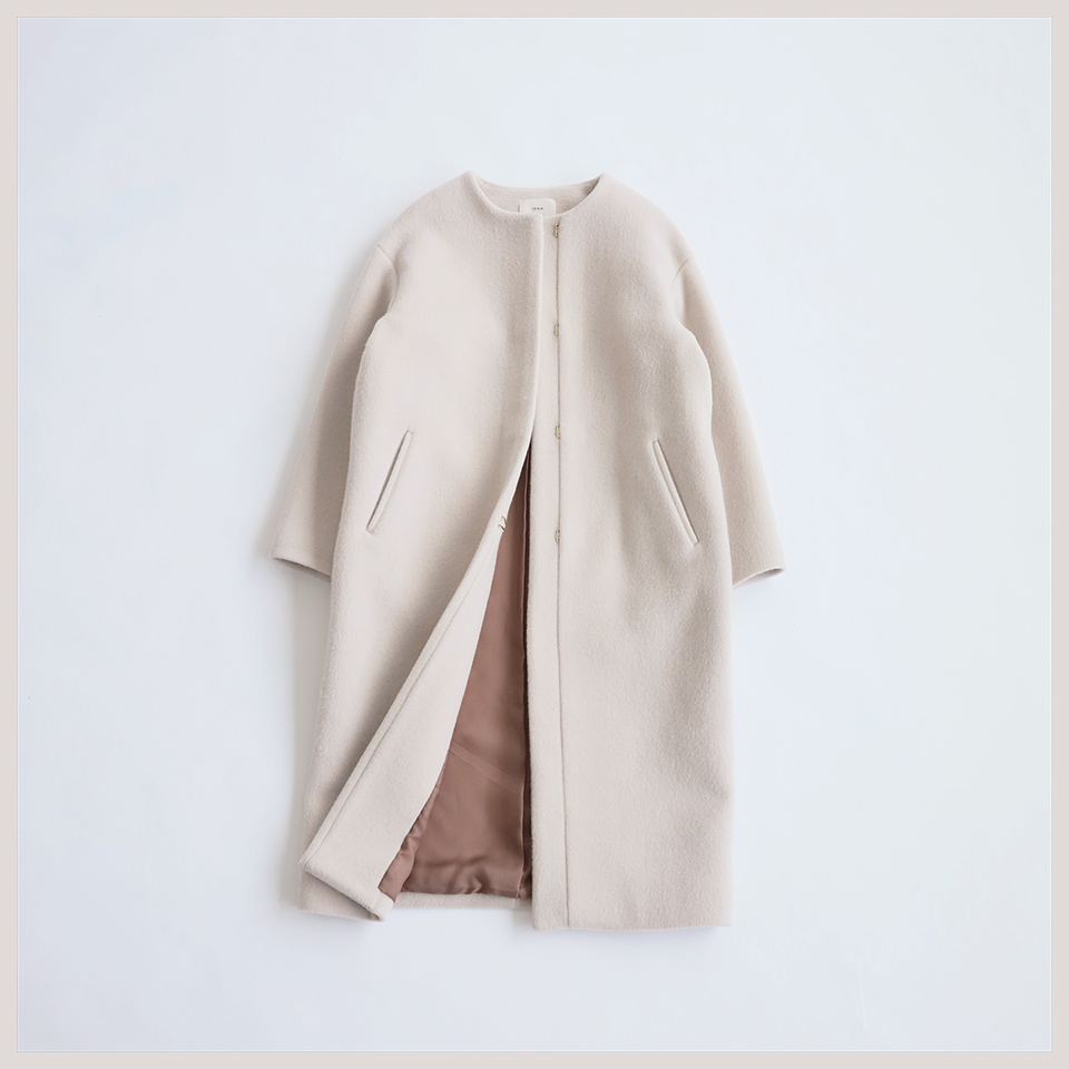 ※クレジットの記載がないアイテムは入荷次第記載されます。- IENAラムウールノーカラーロングコート◆¥49,500(税込)