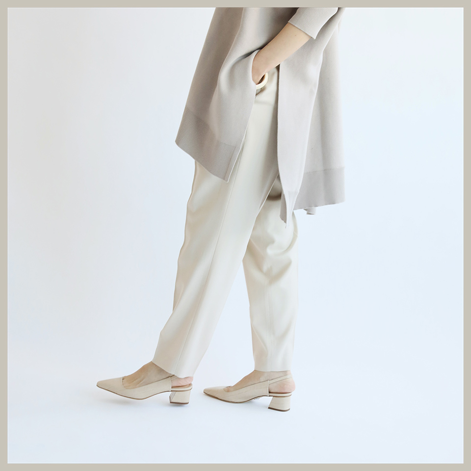 オンオフで便利なスラックスパンツは