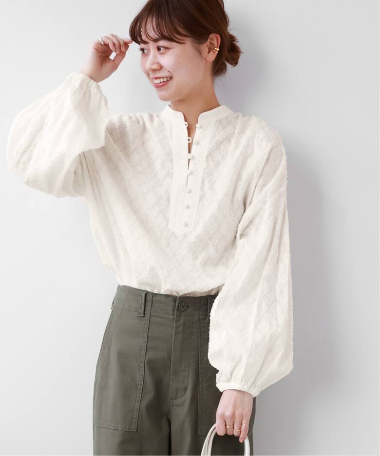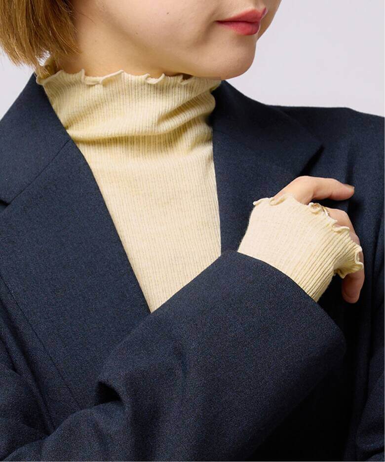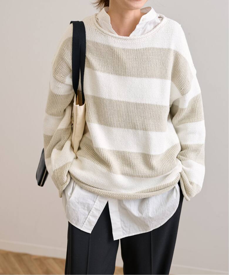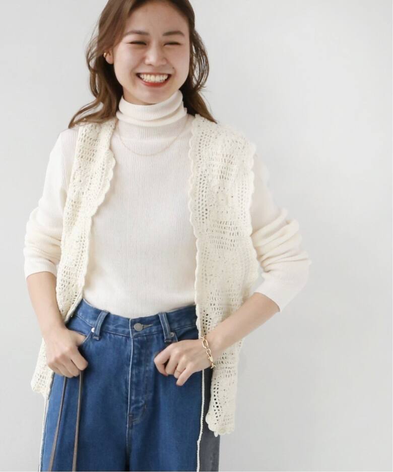 デイリーに活躍する万能トップスざっくりしたミドルゲージが春まで活躍するニットは、ぽわんと広がった袖もワンポイント。ハイネックインナーカットソーは冬から春へのスイッチシーズンにもマスト。