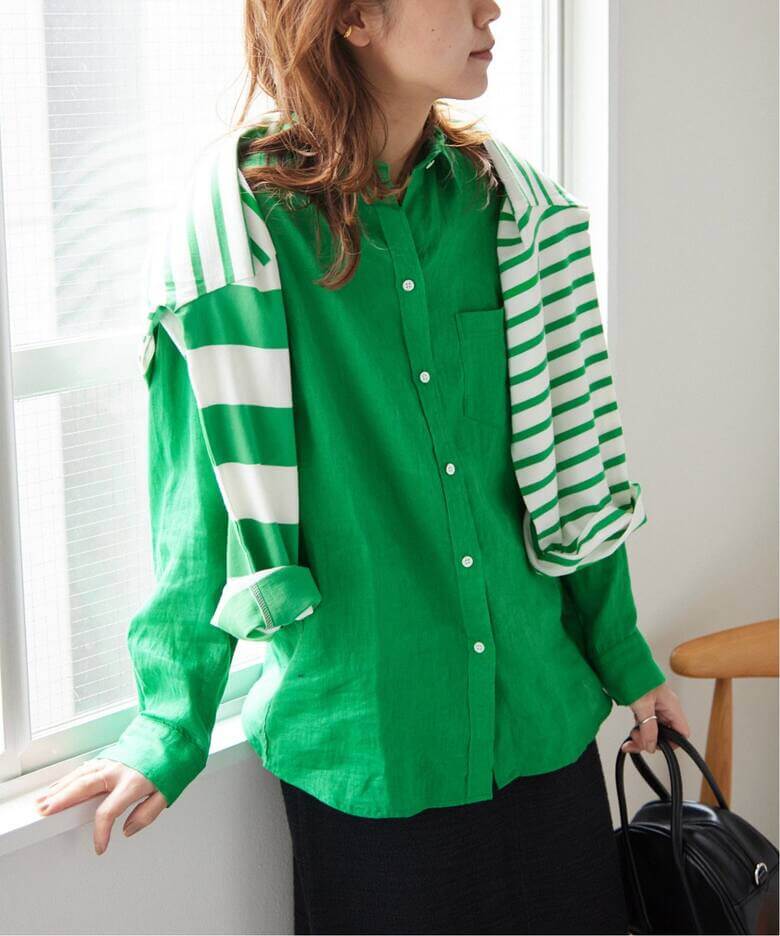 パキッとしたカラーが新鮮!JOURNAL STANDARD relumeの新作リネンシャツは、お洒落指数をぐっと高めてくれる鮮やかなグリーンをレコメンド。カーディガンも今買うなら春らしいイエローに衣替えして。