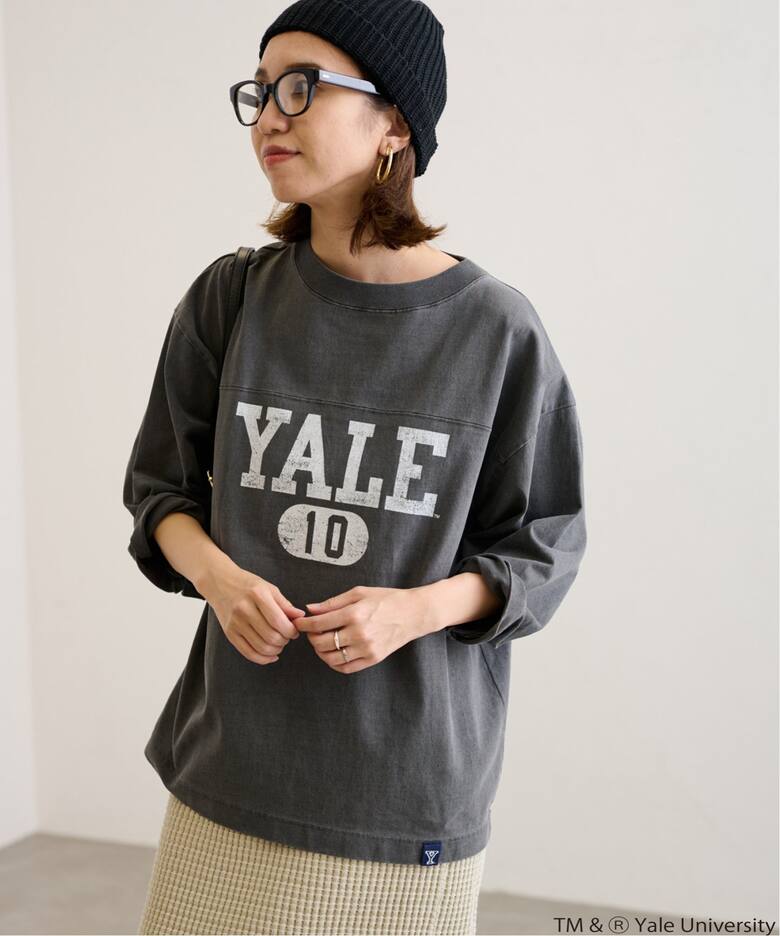 くすんだ色合いがこなれ感満載YALEロゴがキャッチーなフットボールTは、かすれた風合いのプリントやくすんだブルーがこなれた表情。ニュアンシーな淡いボーダーのゆるニットはレイヤードしやすくて◎。