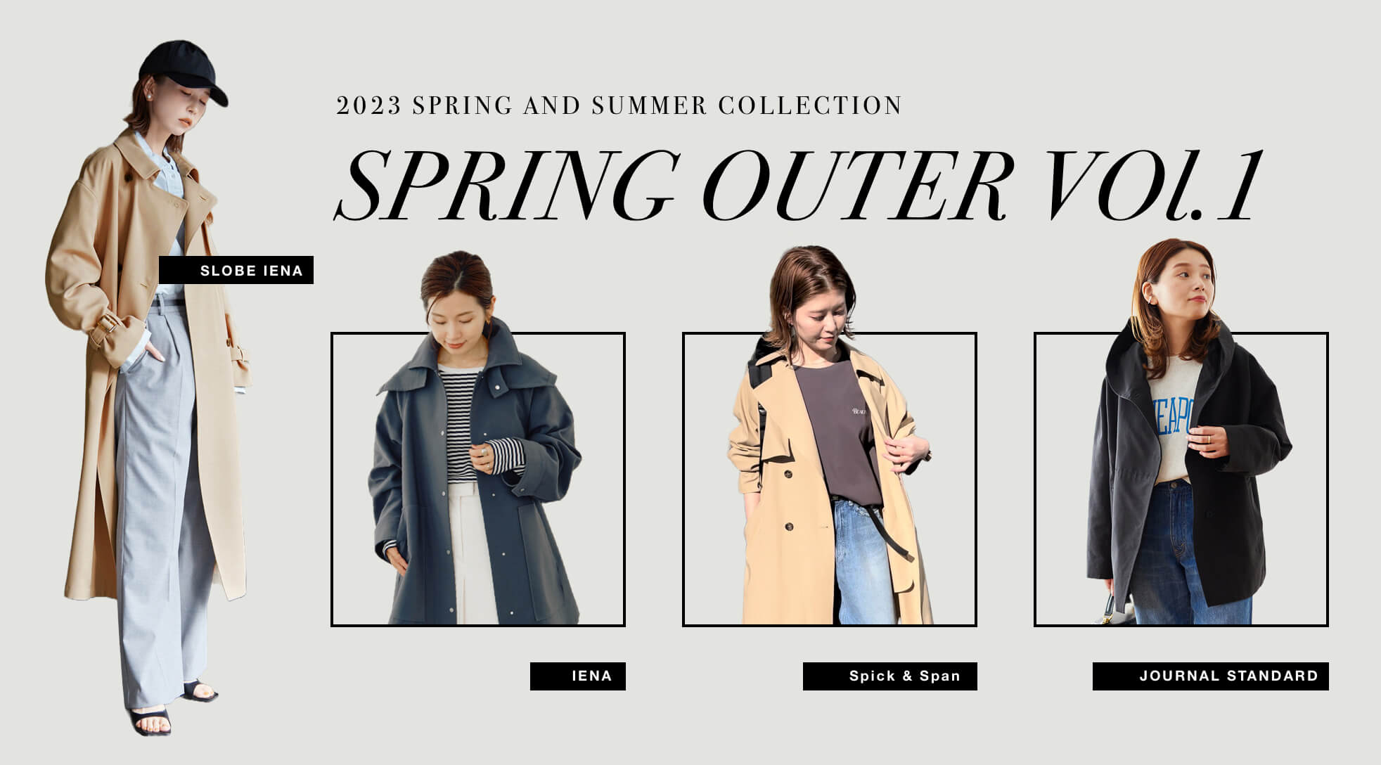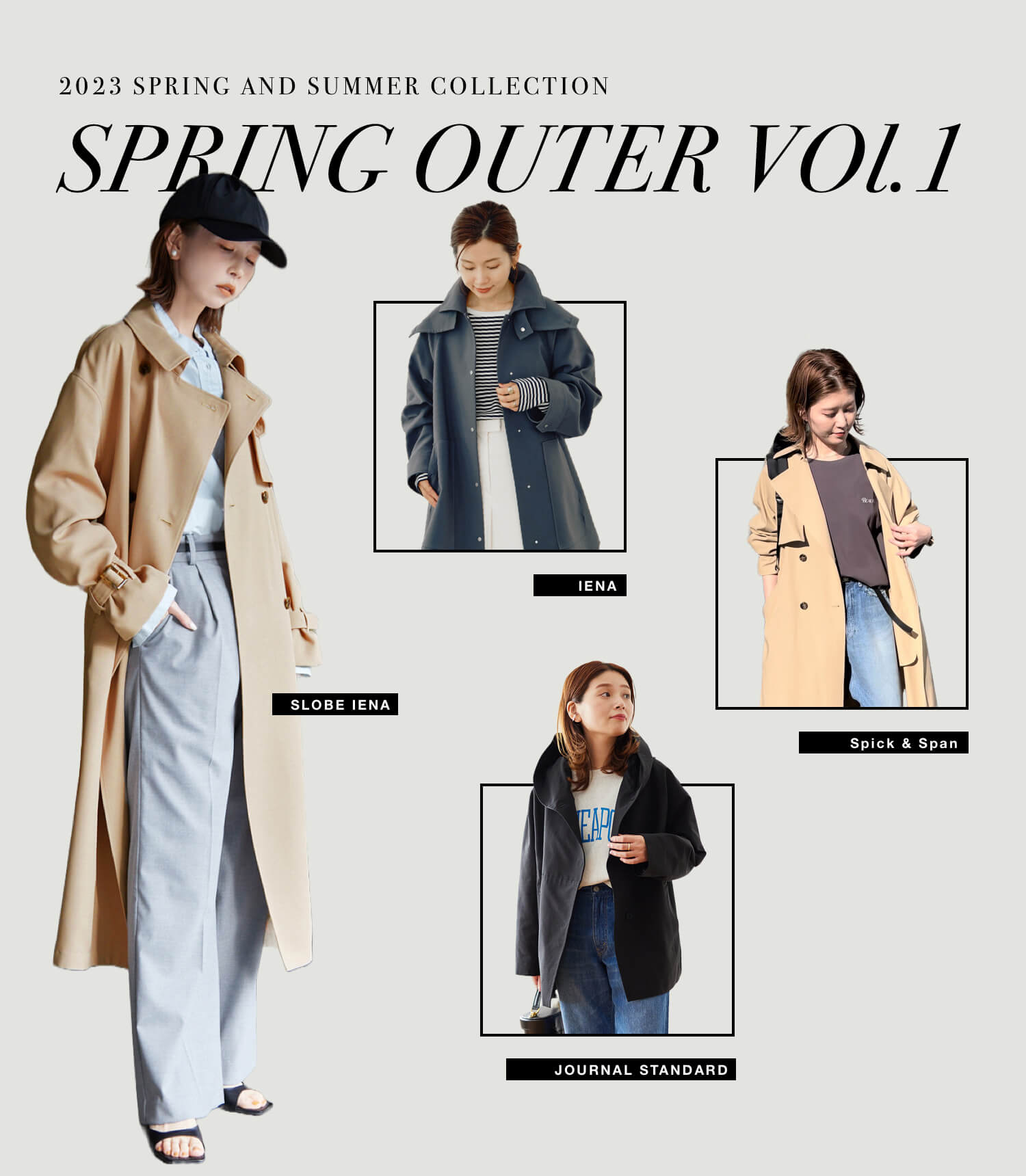 かっちりしすぎない上質クラシック春アウターの代表格、ステンカラーコートやダブルブレストジャケット。ほんのりリラックスしたシルエットやスポーティーな軽さなど、モダンな今顔スタイルにアップデートして。