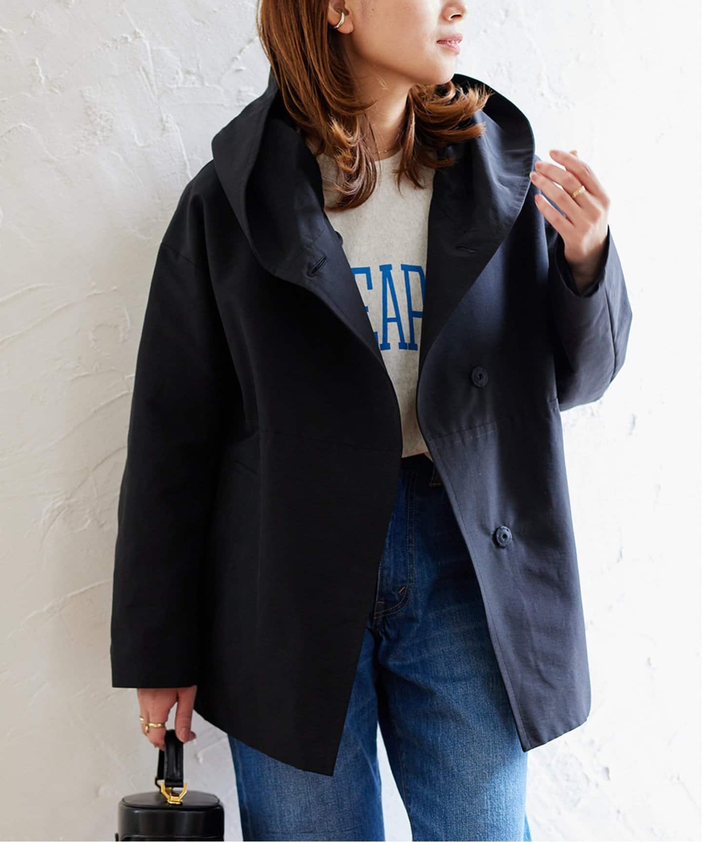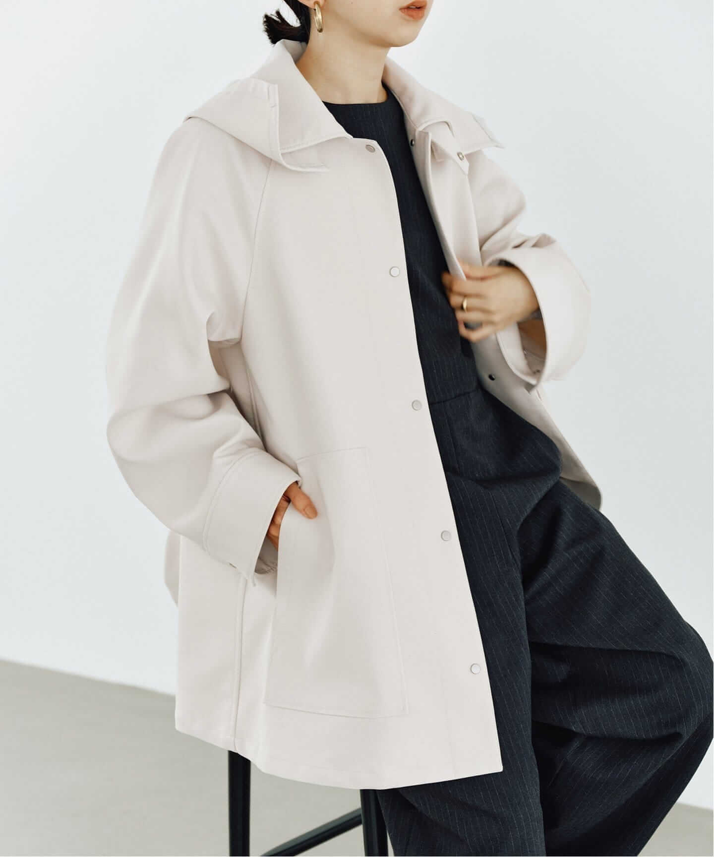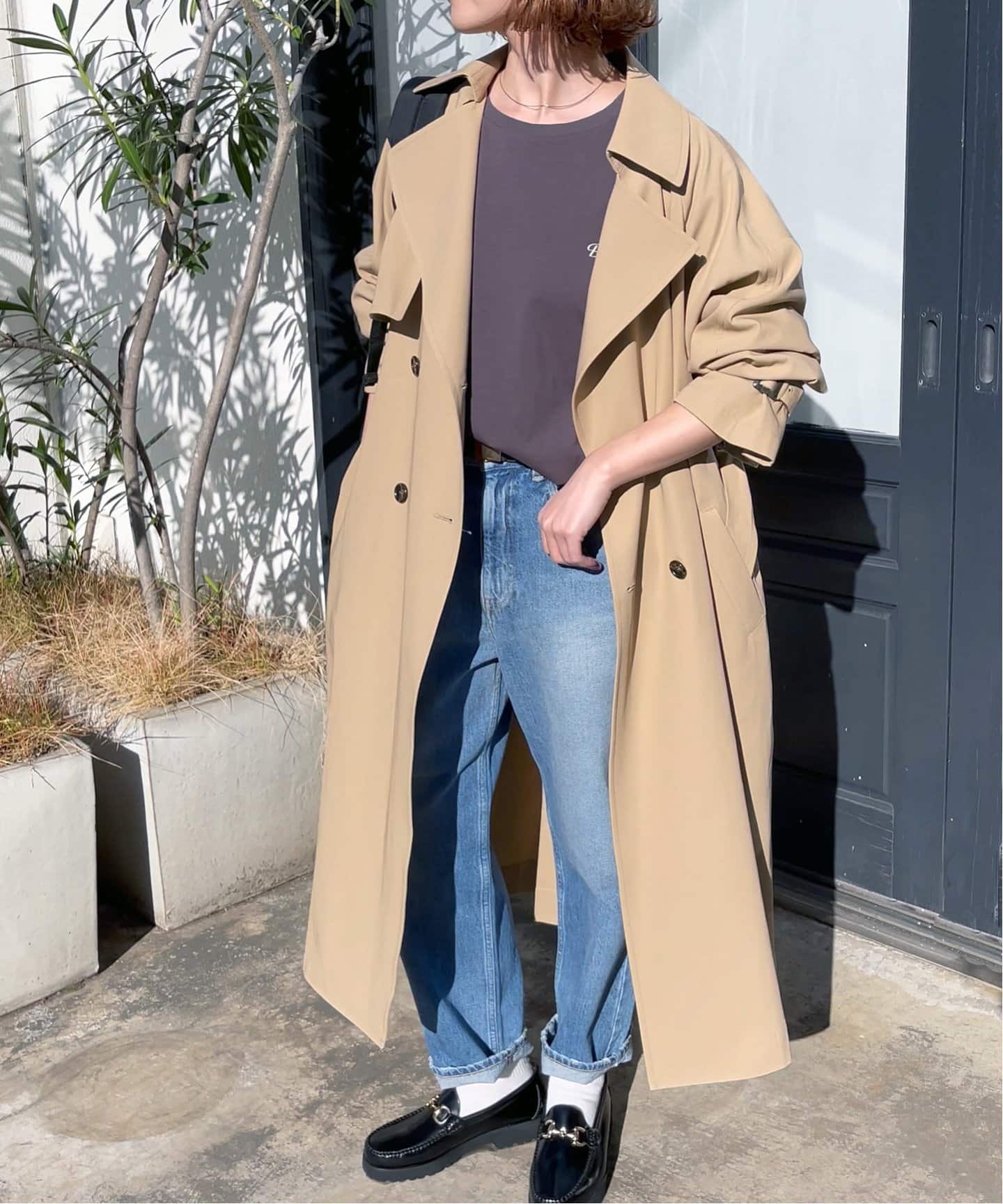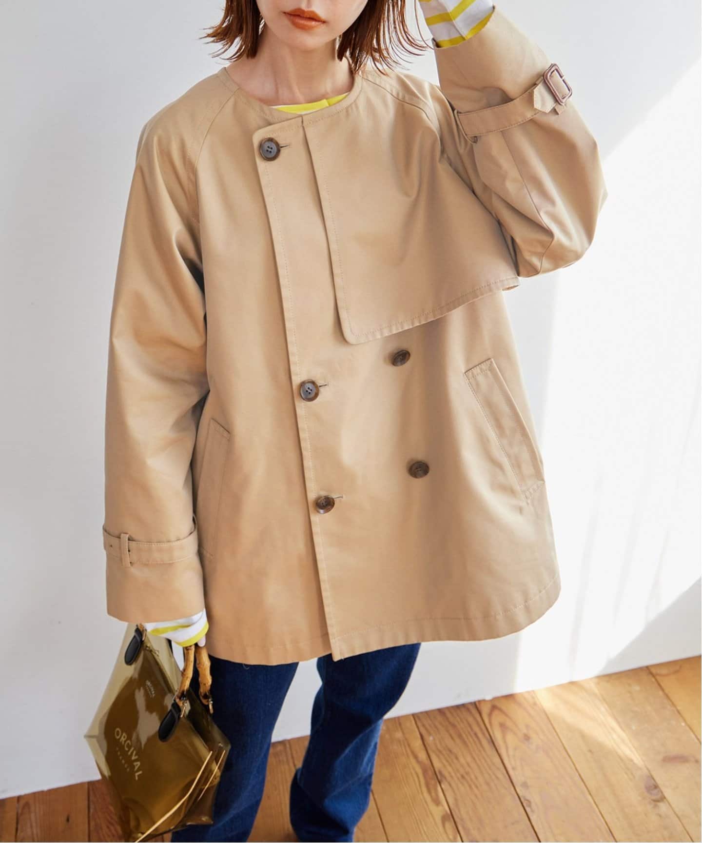 ラフさが今っぽい最旬トレンチデイリーコーデをお洒落に格上げしてくれる、JOURNAL STANDARDらしいショートトレンチが登場。気軽に羽織れるミドル丈に加え、ノーカラーが女性らしい抜け感も◎。