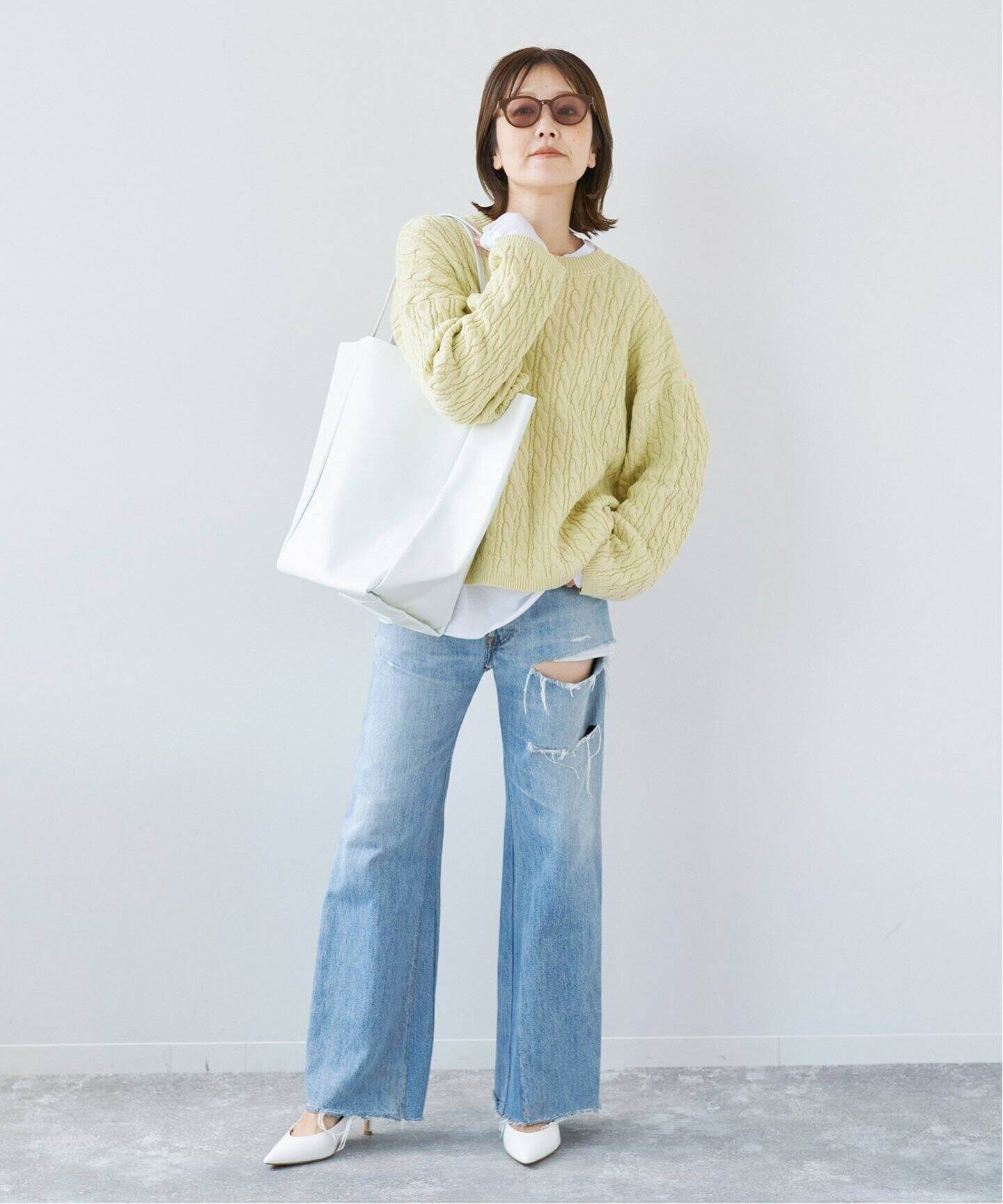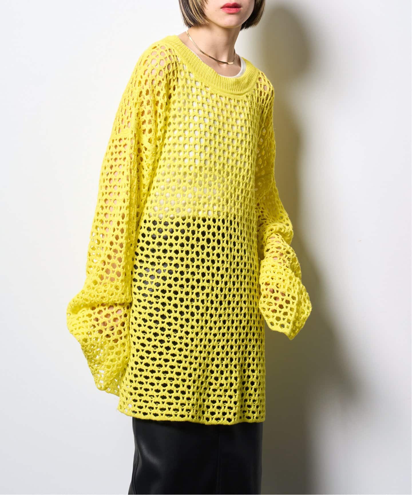 等身大のデイリーコーデに取り入れられるロゴニットなら、イエロー初心者でもトライしやすくておすすめ。ワンランク上のコーデにはメッシュ編みニットをプッシュ。