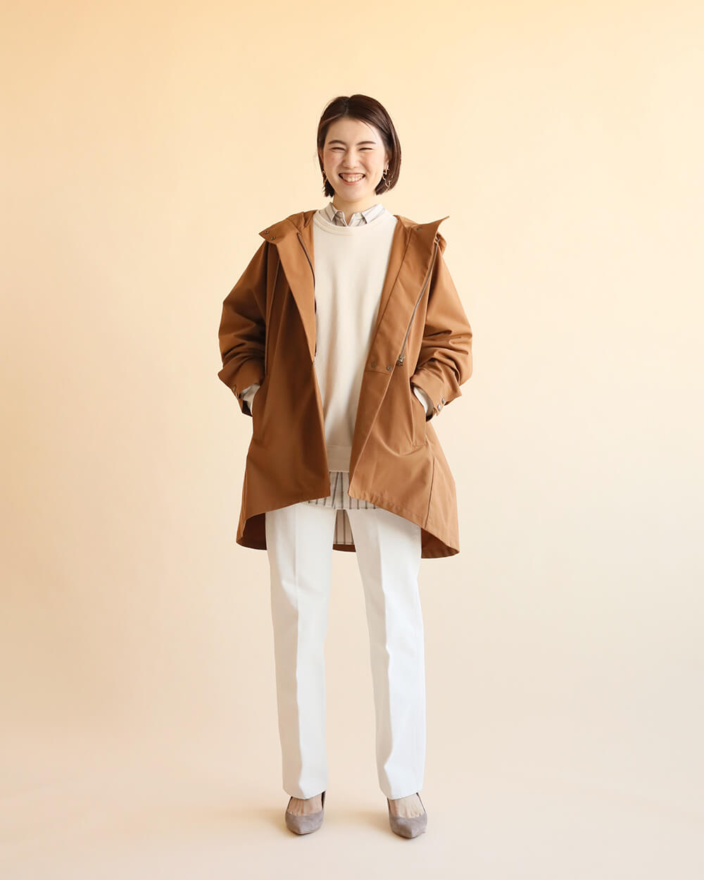 柔らかいトーンでまとめた着こなしが断然おすすめ。