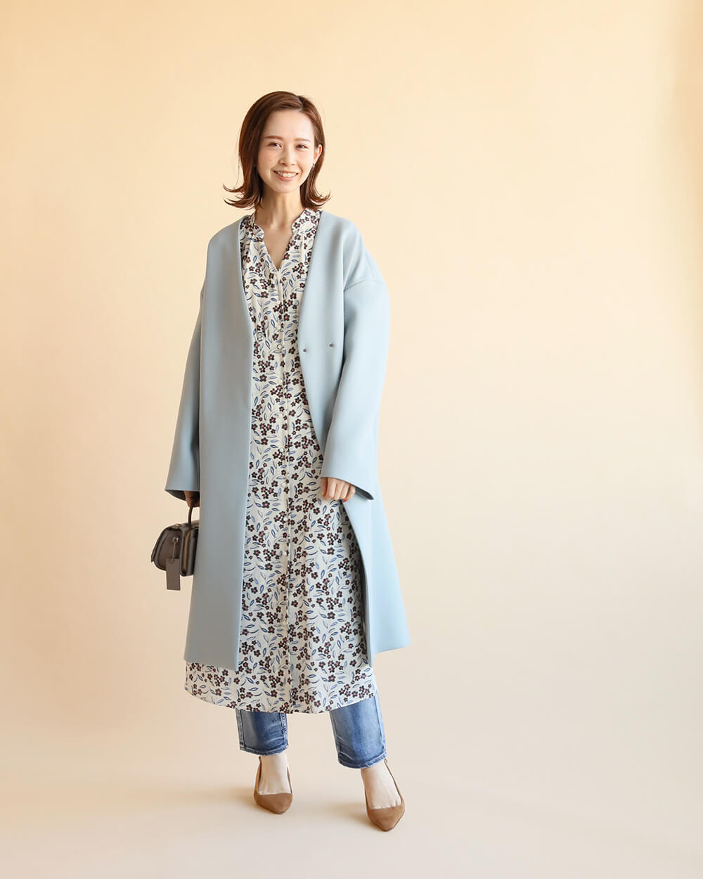 ワンピースを一枚で終わらせないレイヤードも引き続きポイントです。