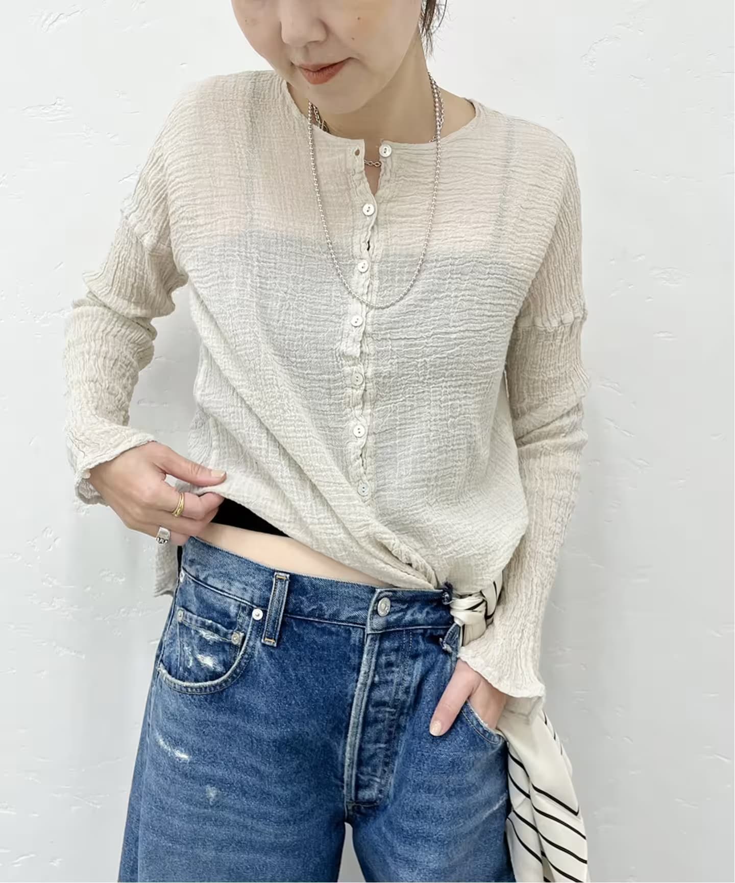 シアートップス昨年も人気だったシアートップスが、今季ますますバリエーション豊かにパワーアップ。寒い今の時期はレイヤードでチラ見せするだけで、ニュアンスのある着こなしに。