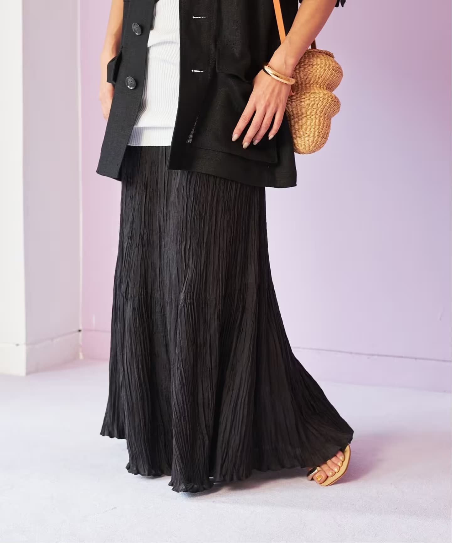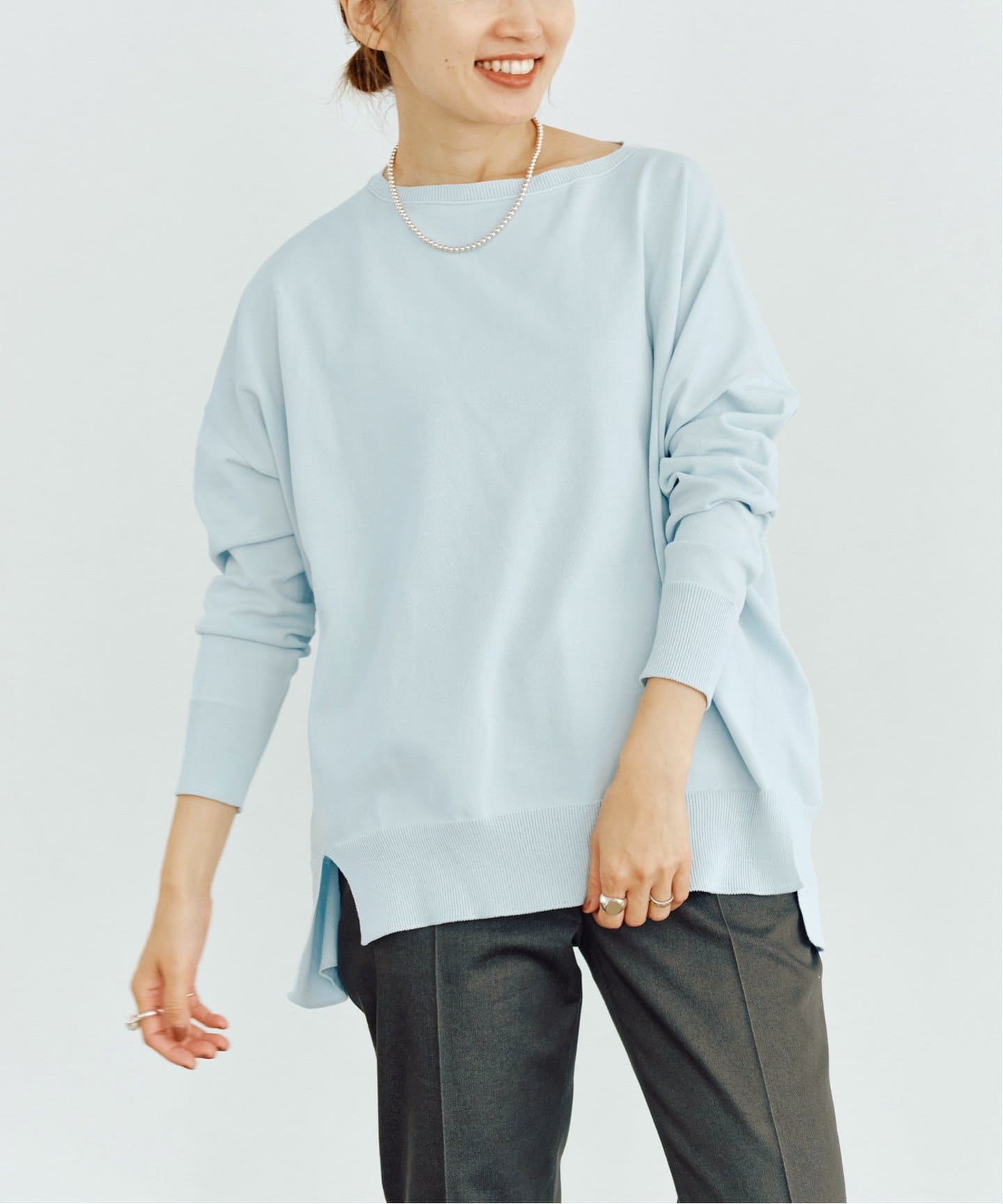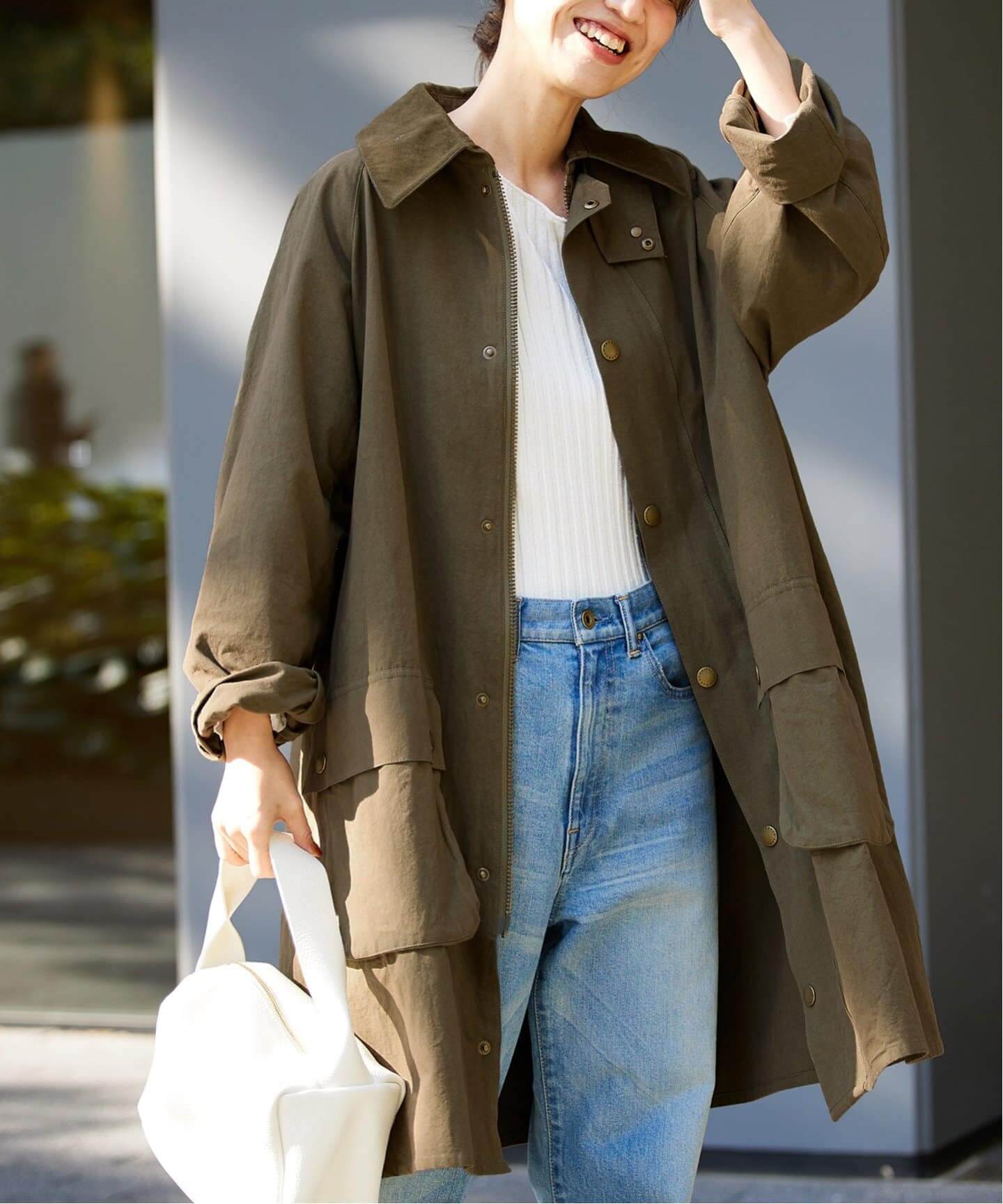 エレガントだけど着やすい上質ワードローブばさっと羽織るだけでこなれるVACHEMENTの別注コートや、スマートだけど気張りすぎない淡い光沢のテーパードパンツ。使い勝手良く、上質感たっぷりなのがIENAらしい。