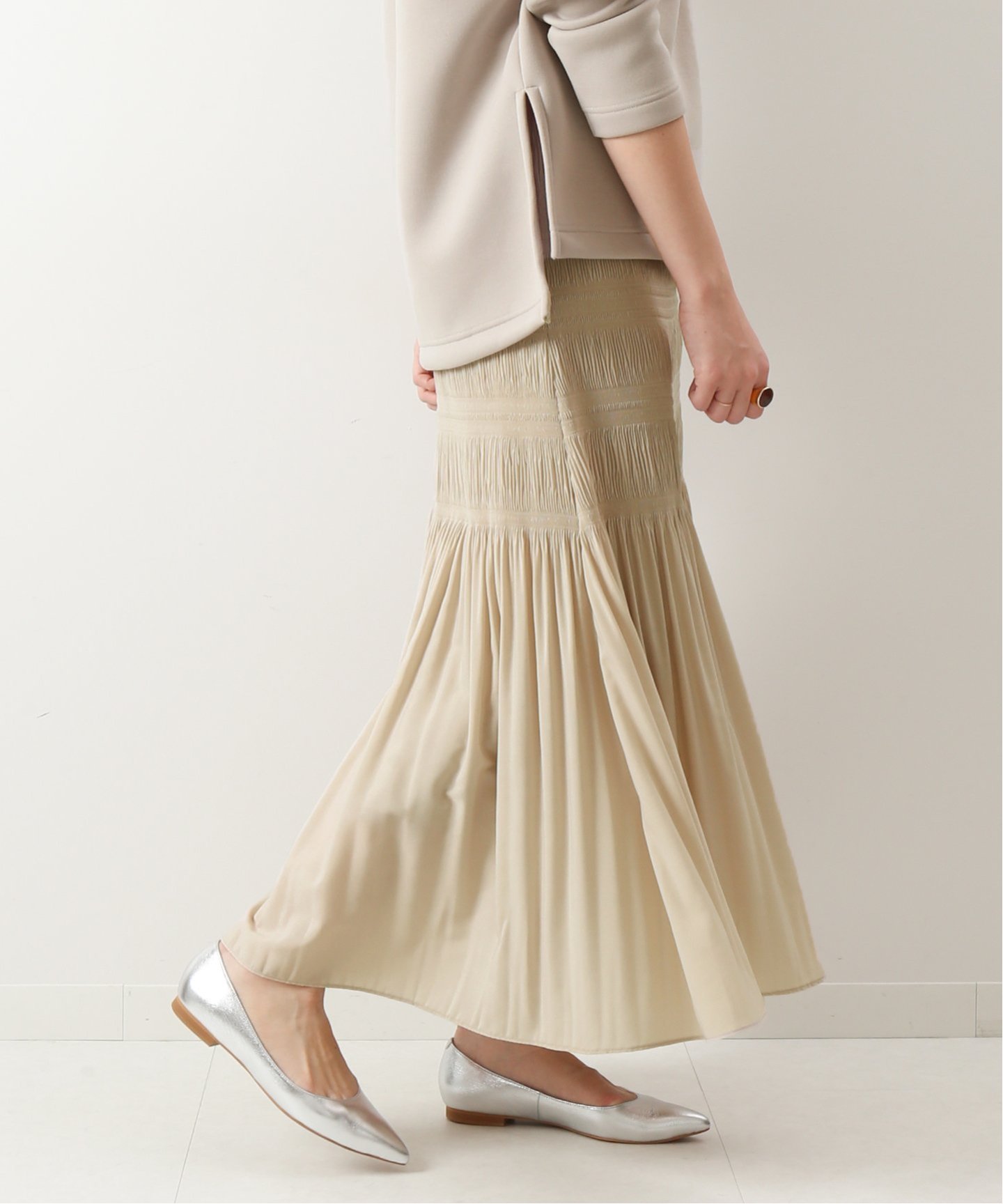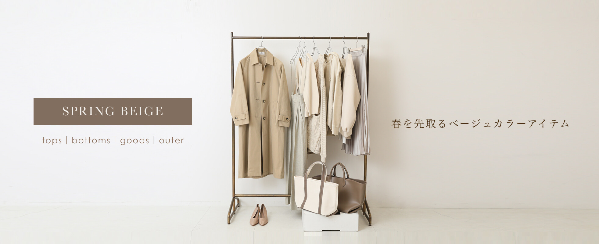 優しいベージュをコーデに取り入れて鮮度を高めて。