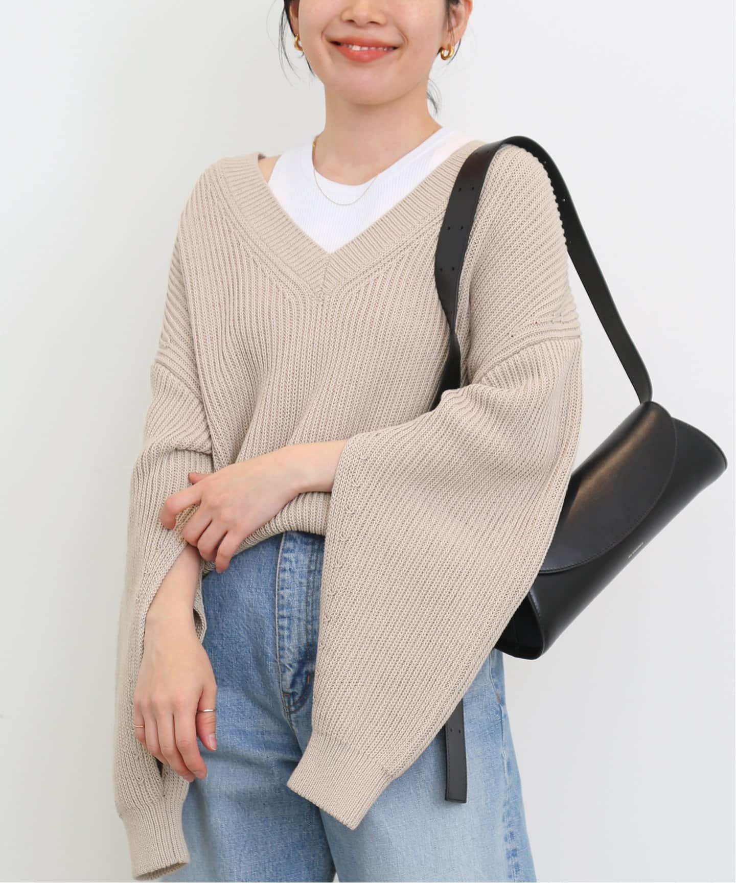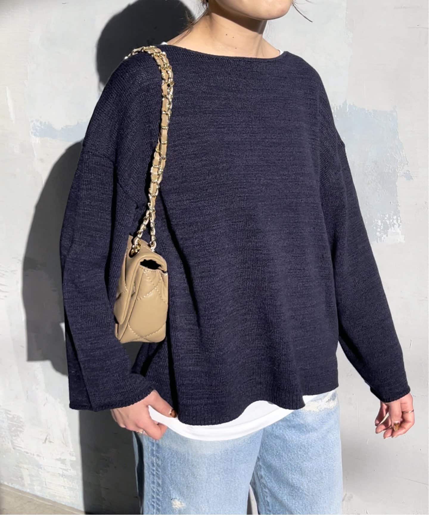 大人リラクシーに春ニットはボディラインを拾わないゆるめなシルエットやざっくりローゲージの気負わない雰囲気が◎。パキッとしたホワイトならキレイめコーデとも好相性。