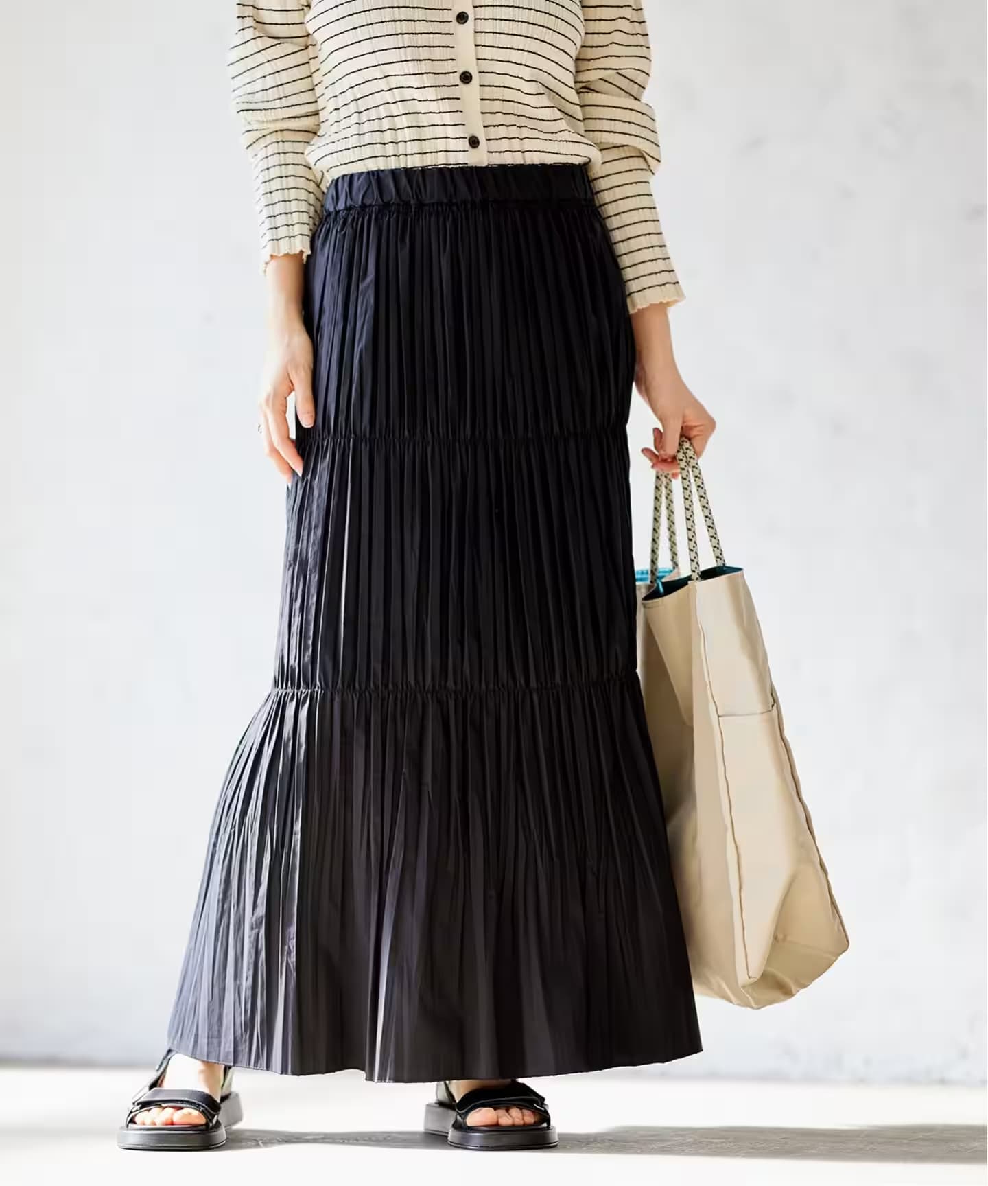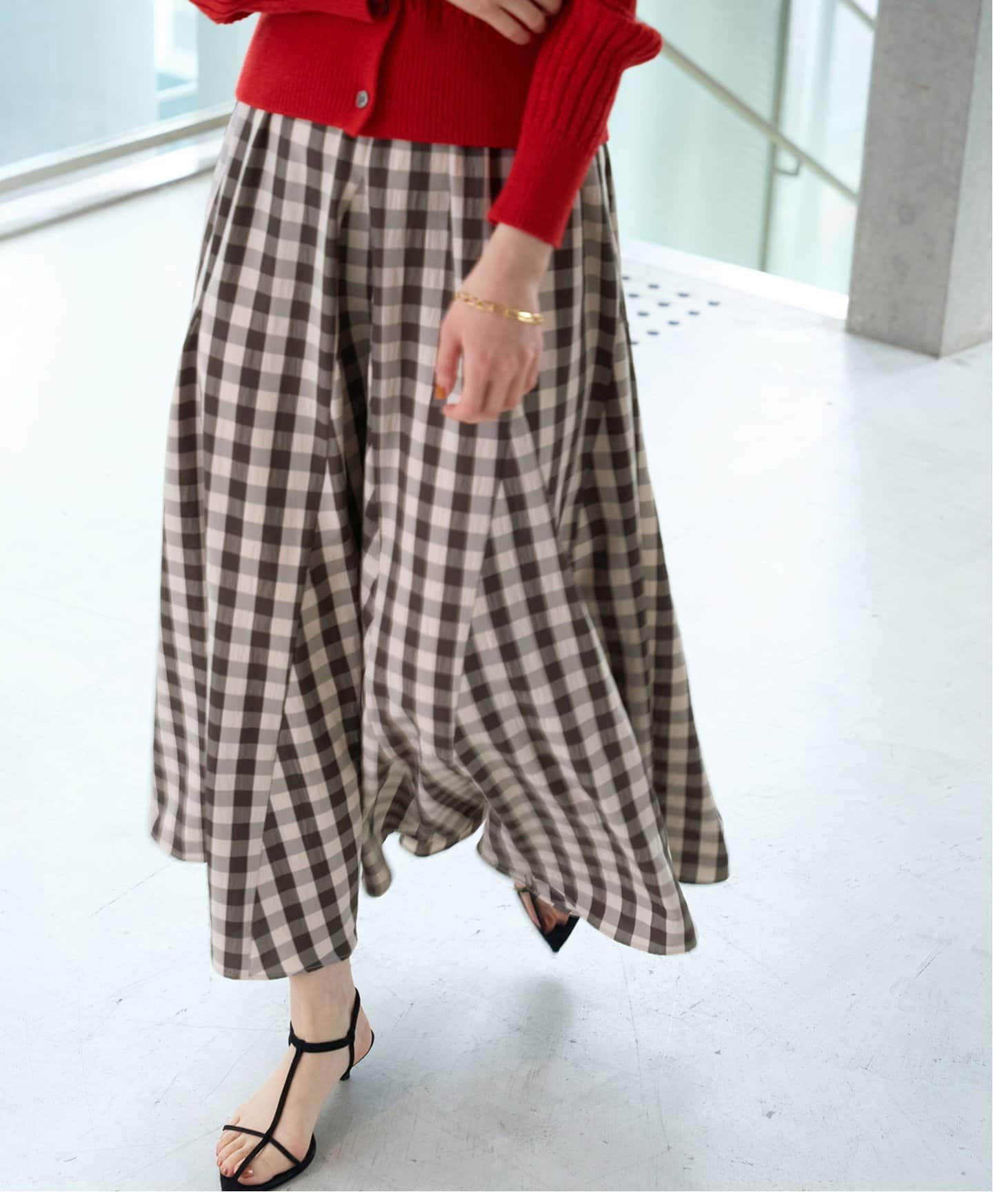 ナローフレアが狙い目この春の揺れスカートは、程よいボリュームで広がりすぎないナローフレアシルエットが旬。上品に煌めくサテンのニュアンスカラーから、大人っぽいギンガムチェックまで。