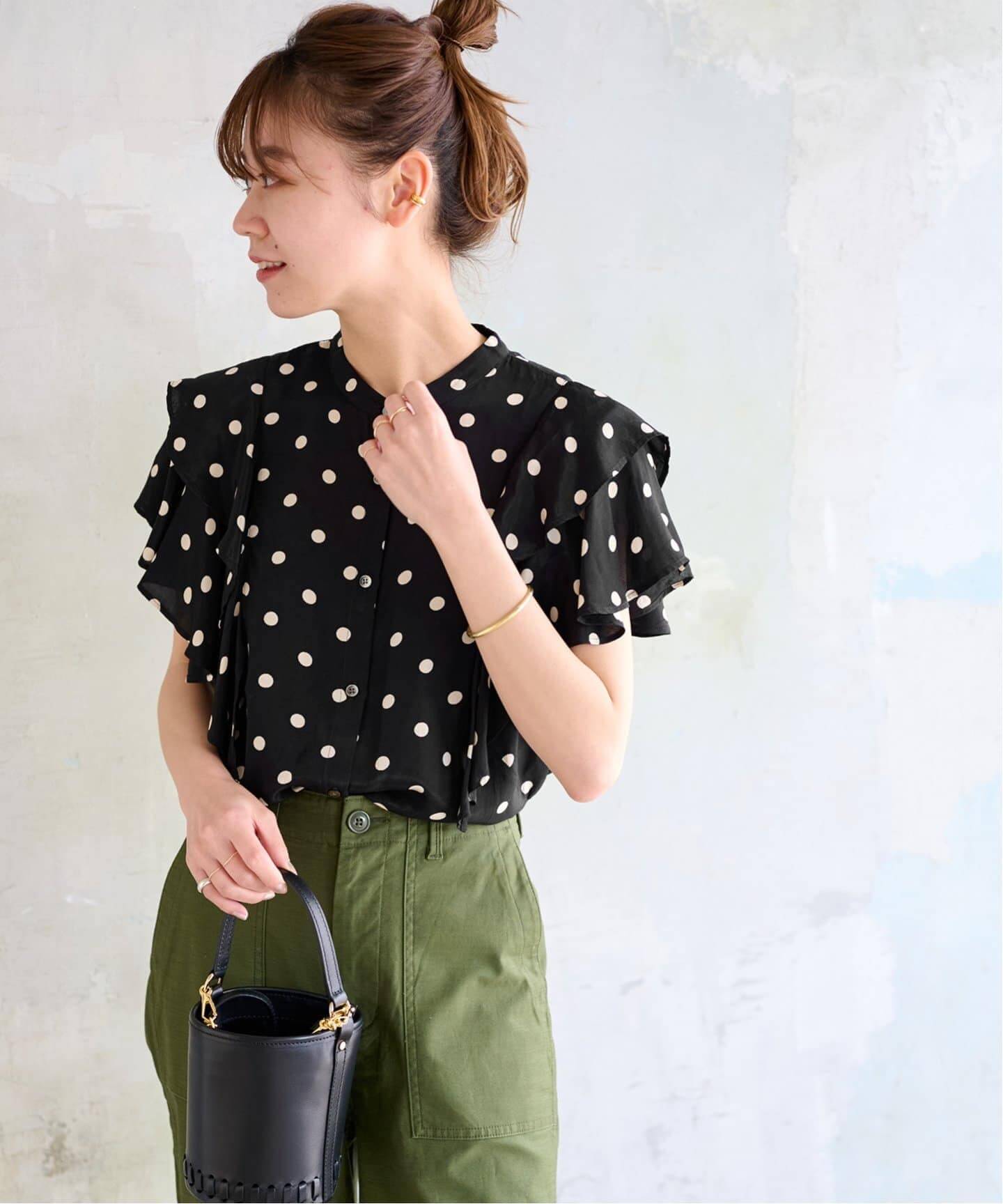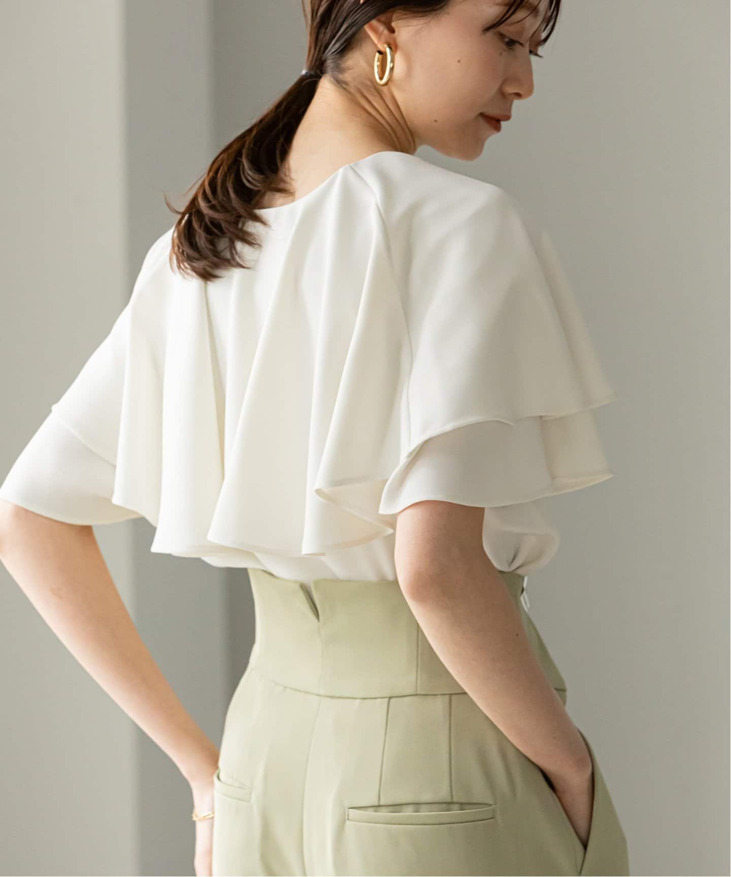 フリルの盛り袖ブラウス4選イベントシーンに頼りになるブラウス。今年は大きいフリルがキャッチーなデザインを。ケープのような大きいフリル袖が目を引くNOBLEの着映えブラウスがお手本。