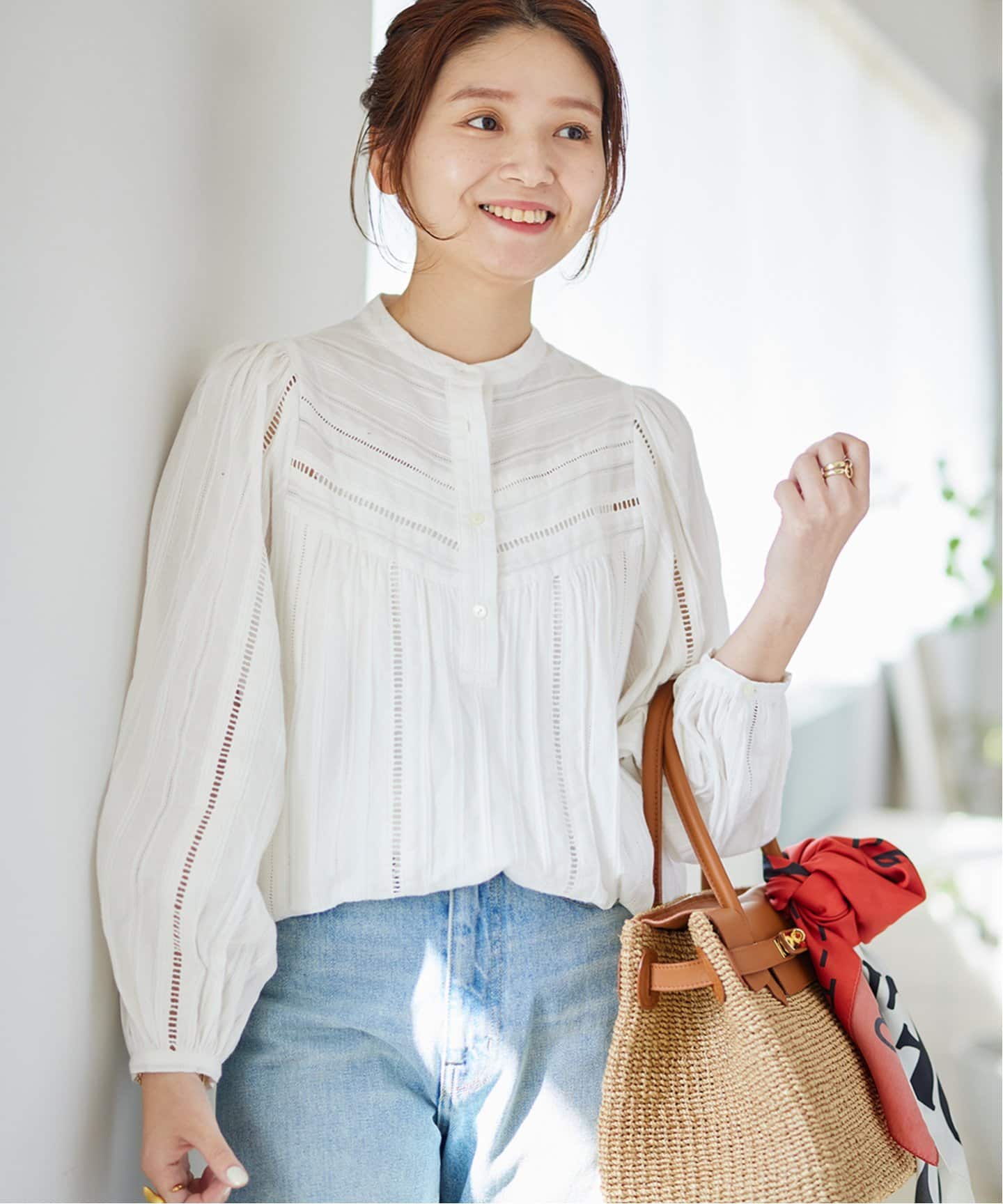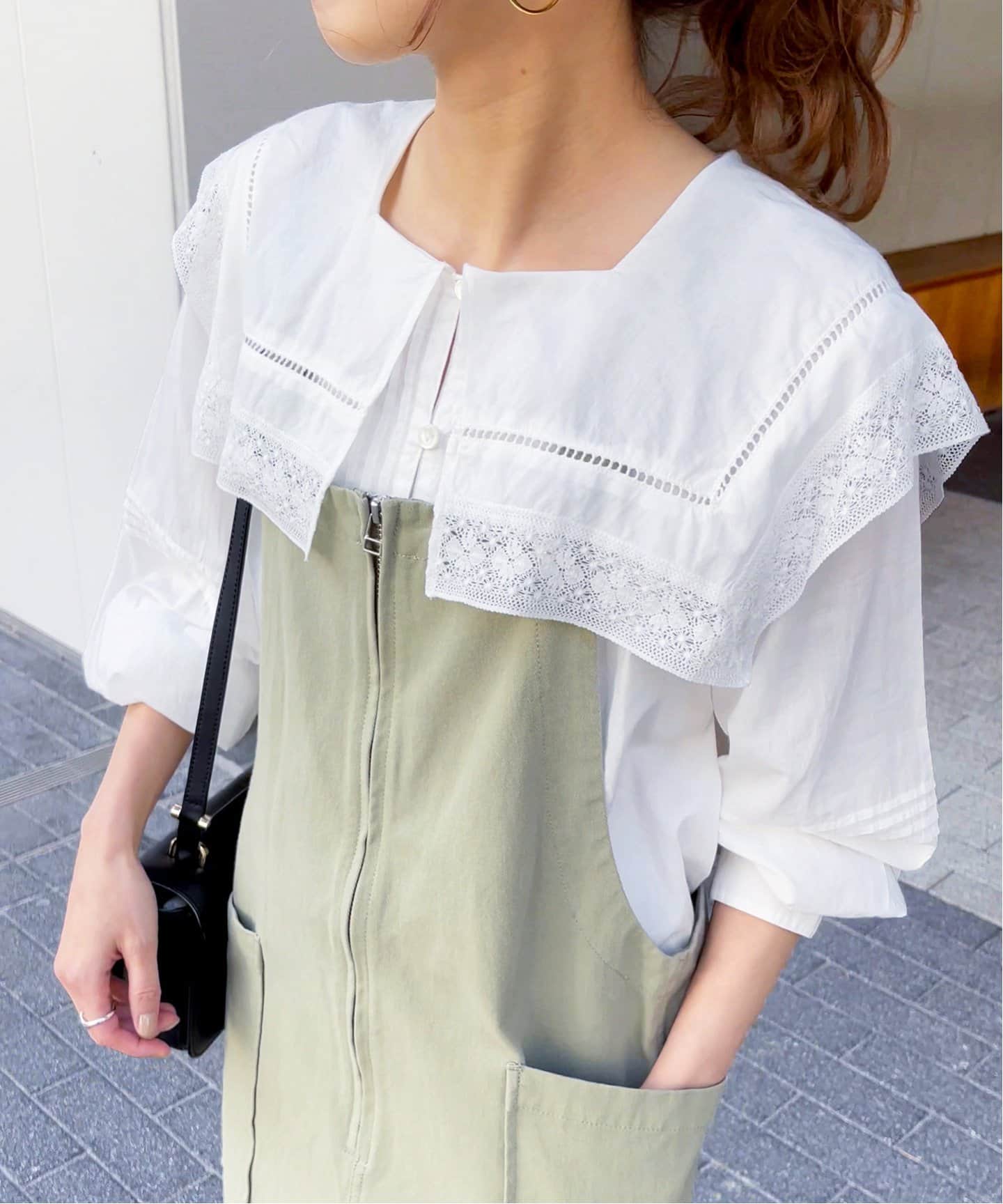 普段使いにも便利ハシゴレースを取り入れたJOURNAL STANDARDや、レース襟をシアー素材に重ねたIENA。やりすぎないディテールでレースを組み込むことで、ハレの日も普段の日もOK。