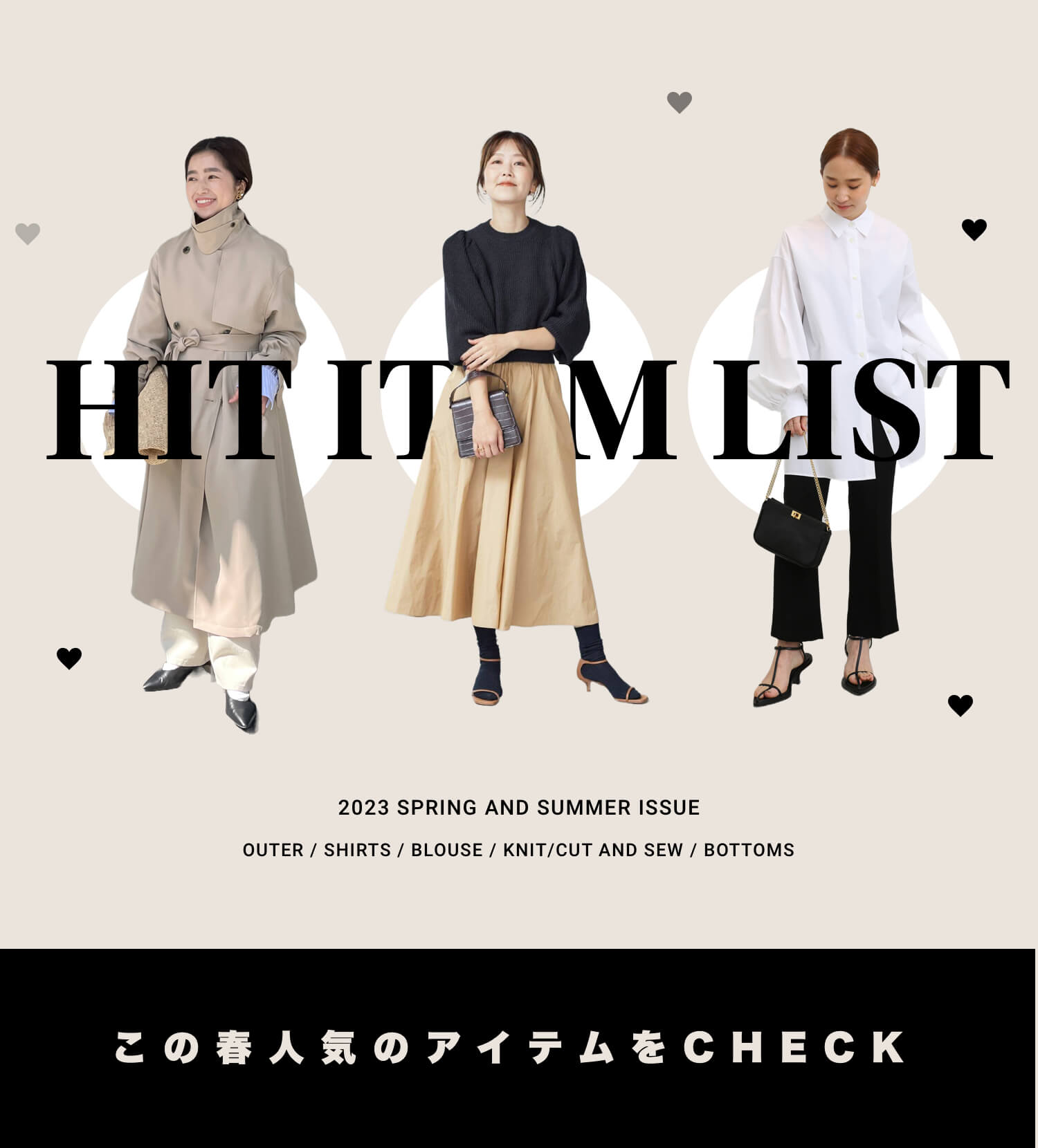 ニュアンスカラーの揺れスカートボトムスはキリッと見えつつ華奢見え効果も期待できるクロップドパンツや、ダスティなカラーが甘さを軽減してくれるチュールスカートなどが人気。