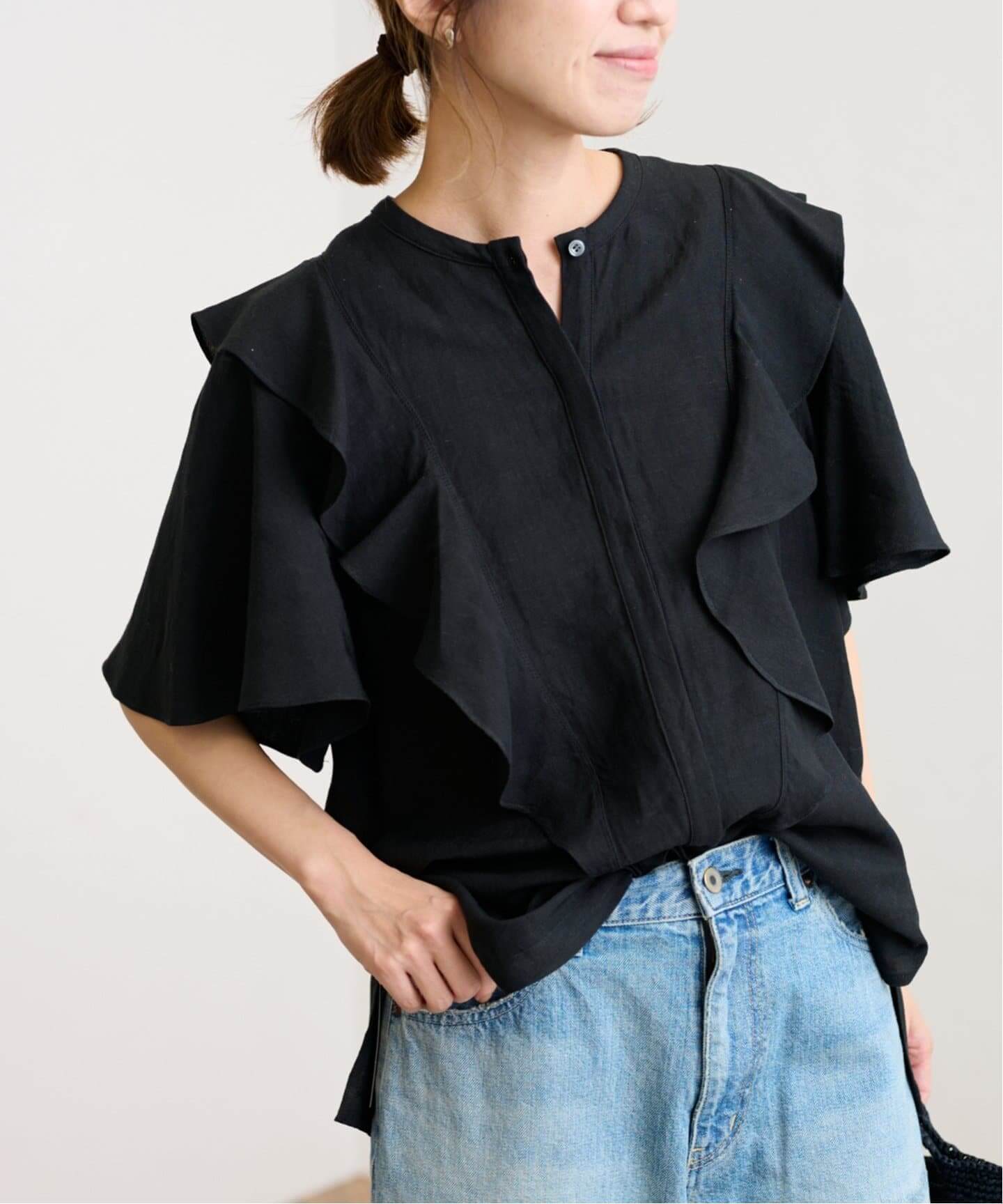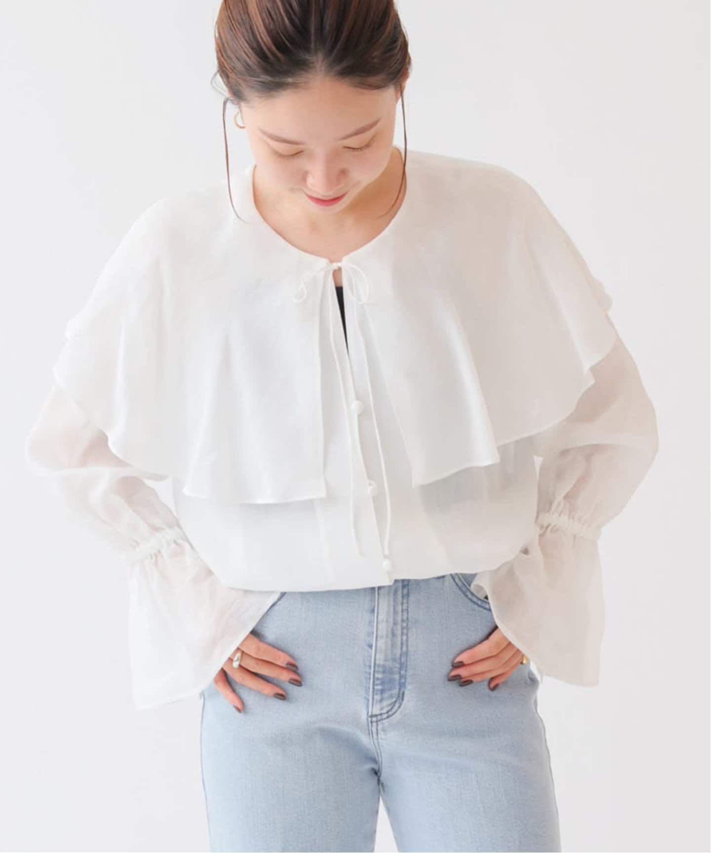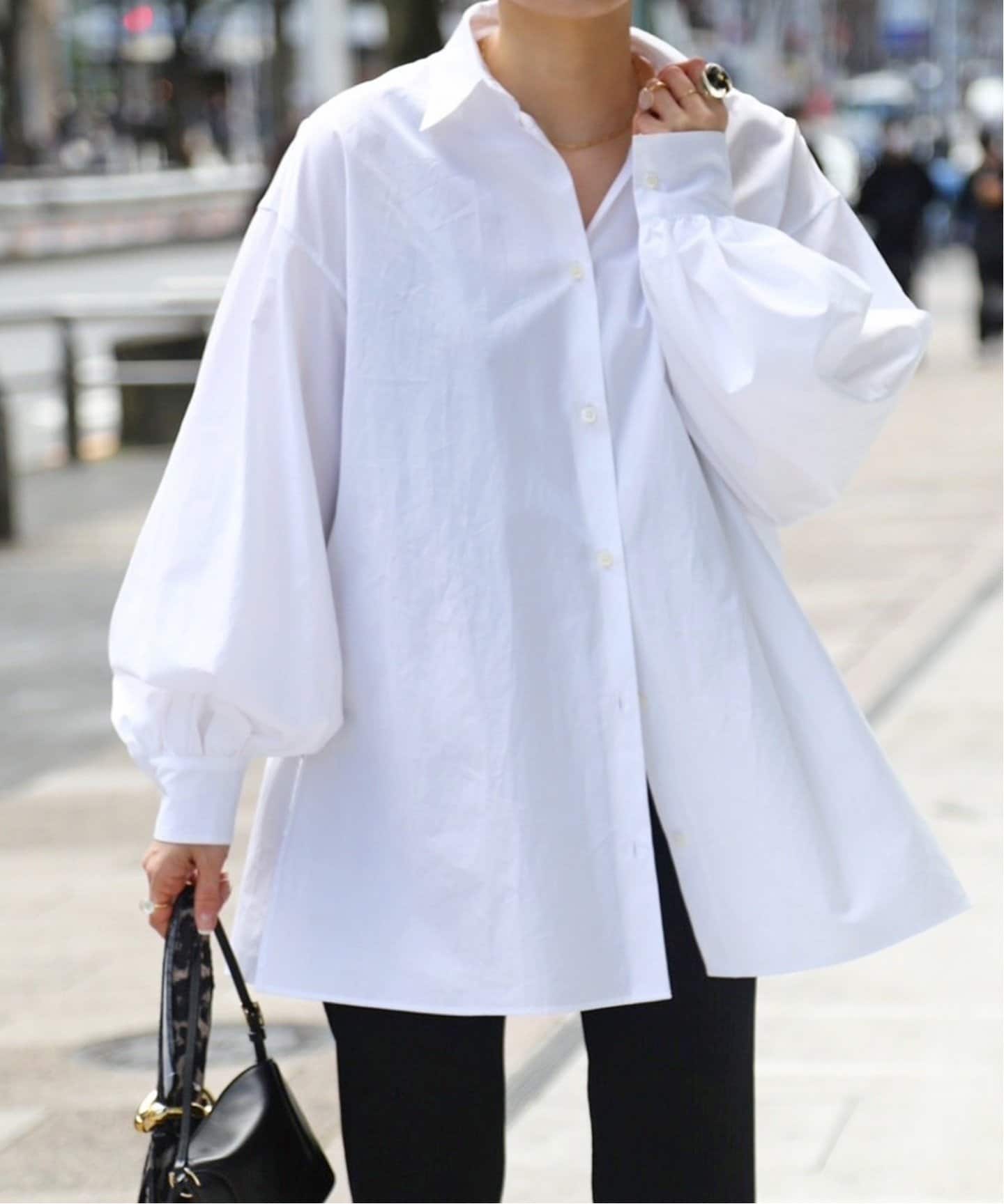 甘デザインをモノトーンで攻略ぽわんと広がるボリューム袖やロマンティックなフリル、ビッグカラーなどフェミニンなシャツ&ブラウスが気分。トライしやすいモノトーンがお気に入り多数。