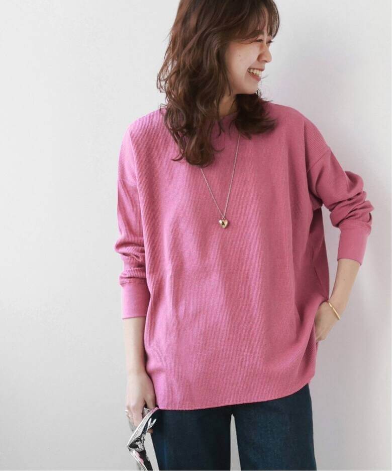 甘い春カラーをラフに着こなすデイリーに着回せるカットソーはシンプルなクルーネックをレコメンド。肩の力が抜けたラフさがありながらも、春らしいピンクや上質素材MIXでキレイめにまとまります。