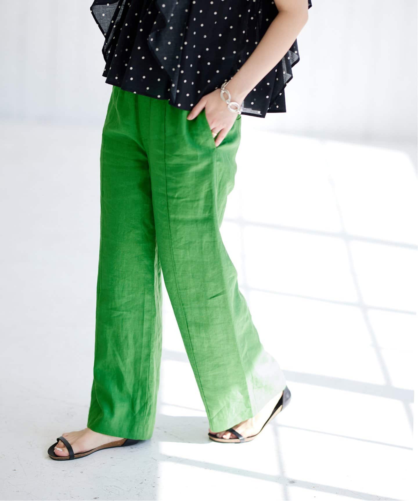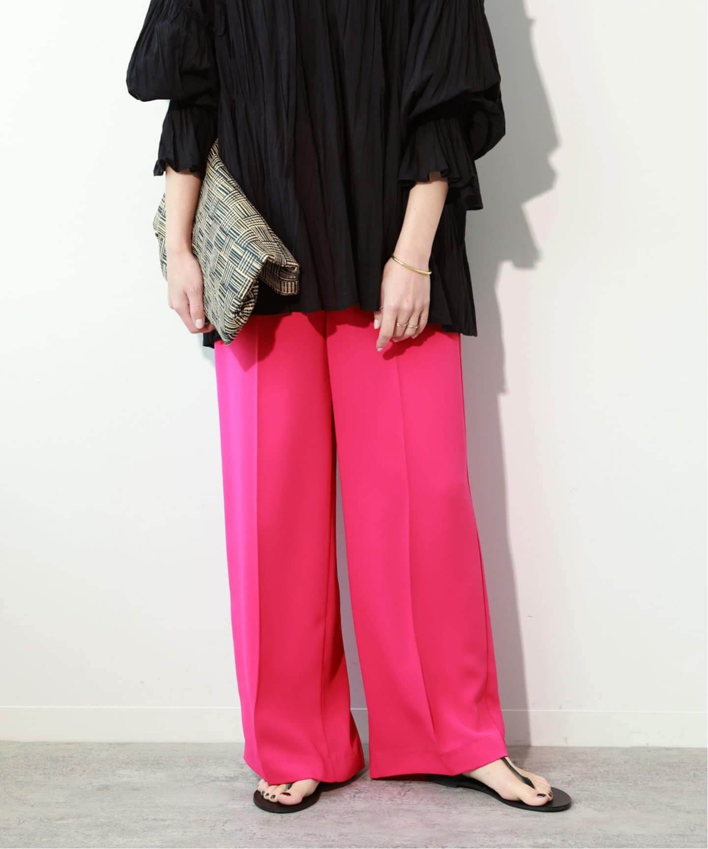 旬カラーにトライ大人コーデと相性の良いワイドシルエットパンツ。グリーンやピンクといったこの春トレンドのヴィヴィッドカラーも、気負わずきちんと感をキープできるから◎。