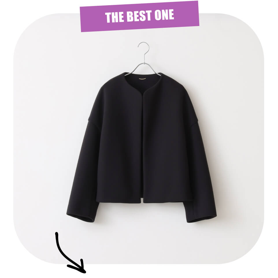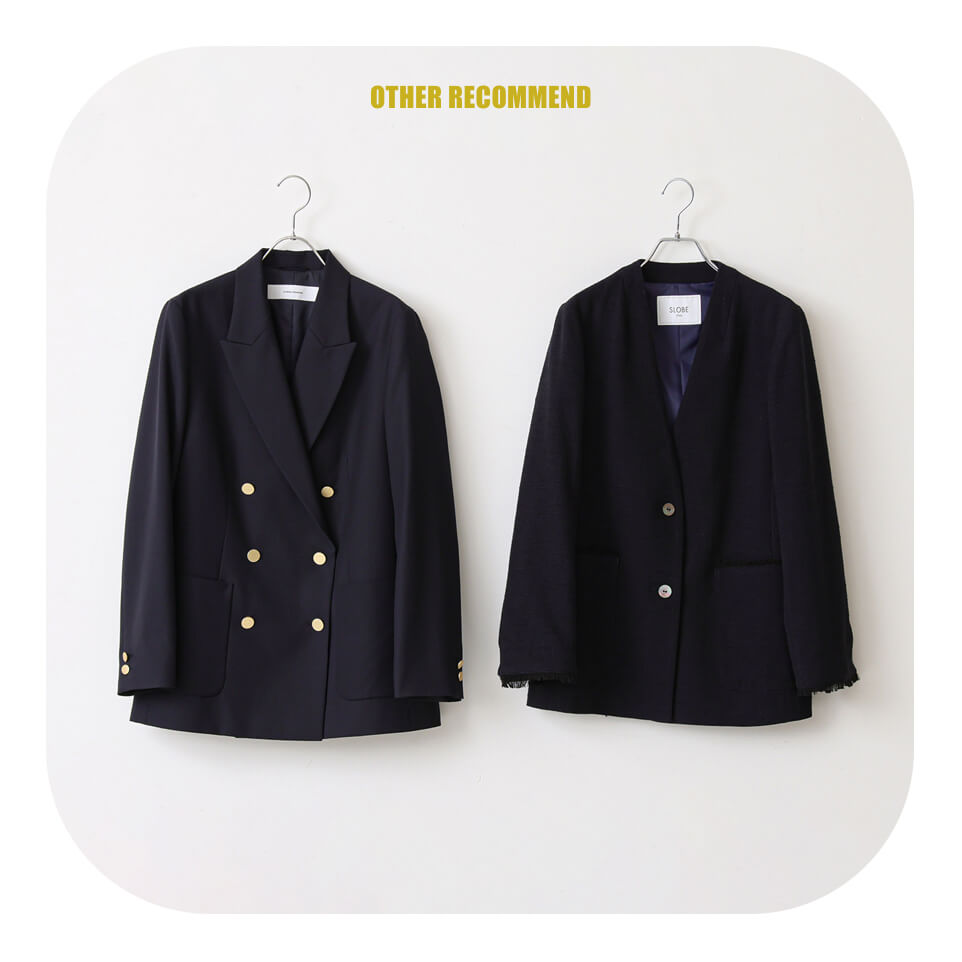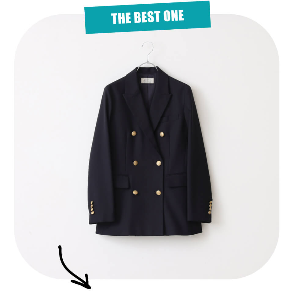 - ストレートタイプのダブルジャケットはストンとしたシルエットで、V開きが縦に深いものがおすすめ。ネイビーなど、濃い色を選べばコーデも引き締まって見えます。SLOBE IENAは、シワになりにくくイージーケアを叶えたウォッシャブル素材なのが嬉しいポイント。