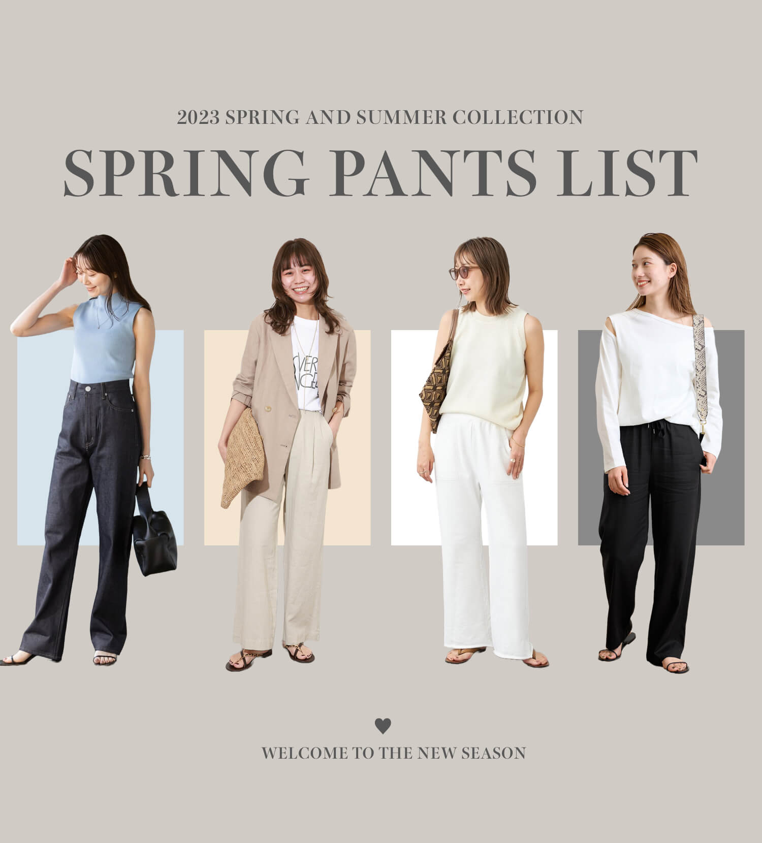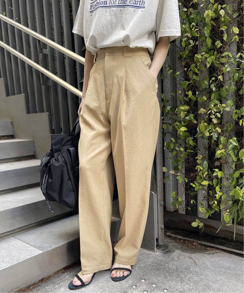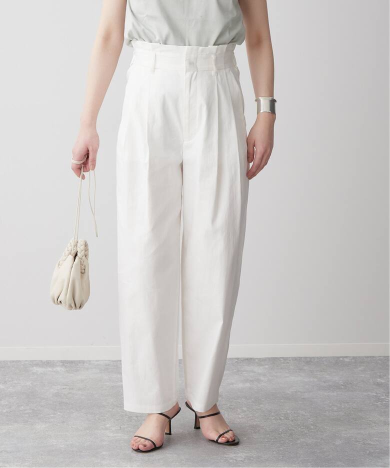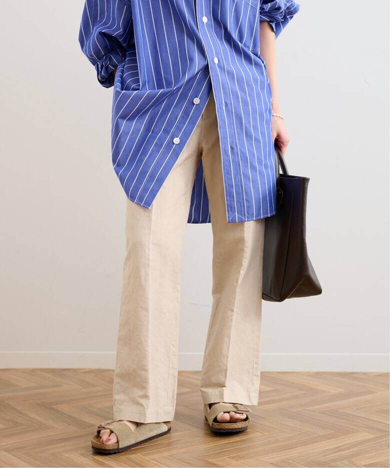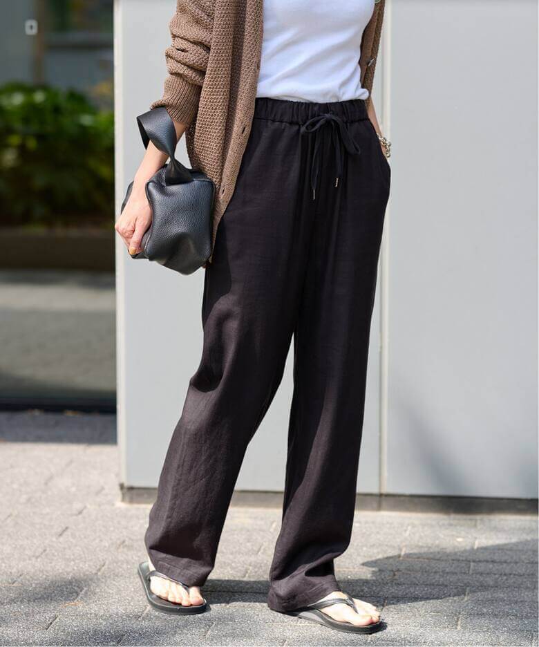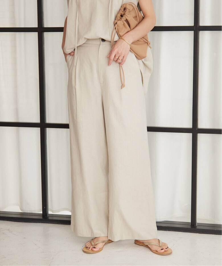 イージーパンツがカギ柔らかくコーデに馴染むベージュは、春らしいリネンに衣替えを。センタープレスが効いたキレイ見えデザインから、ムードたっぷりの落ち感のあるワイドシルエットまで。