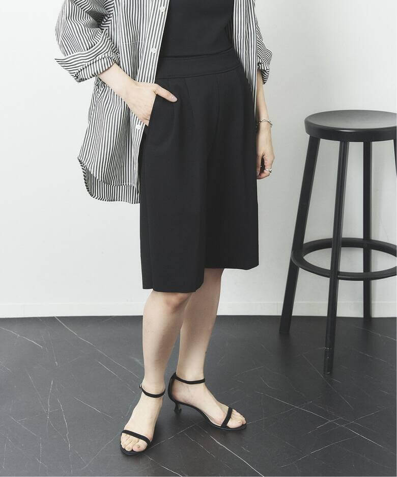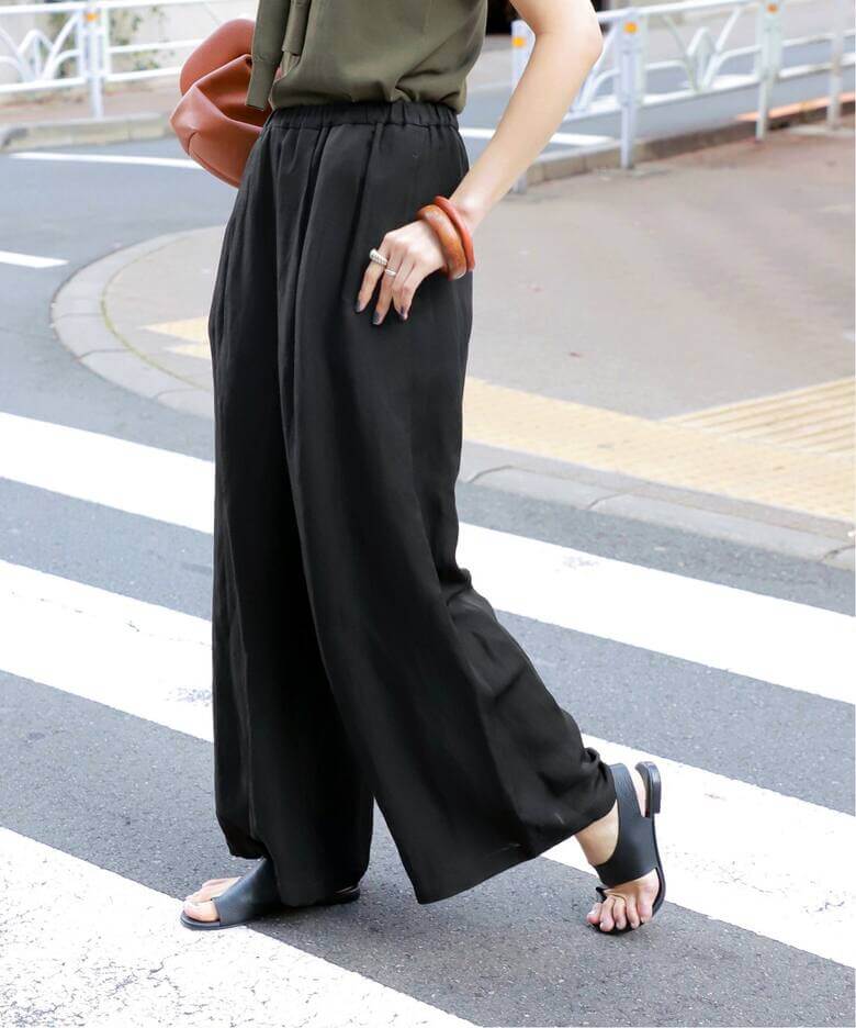ブラックでトレンドにトライシーズンを問わず持っていたいブラックパンツ。トレンドのワイドハーフパンツやツータックパンツも、照れずに挑戦できておすすめ。ベルトレスのイージーなデザインが気分。