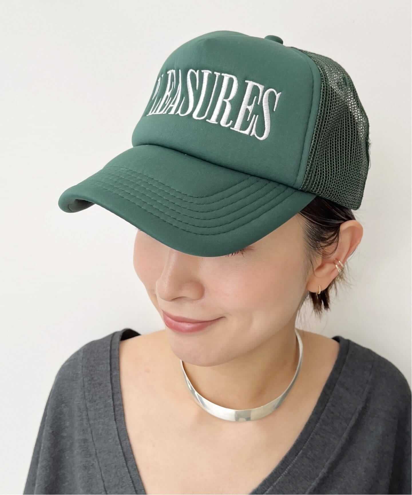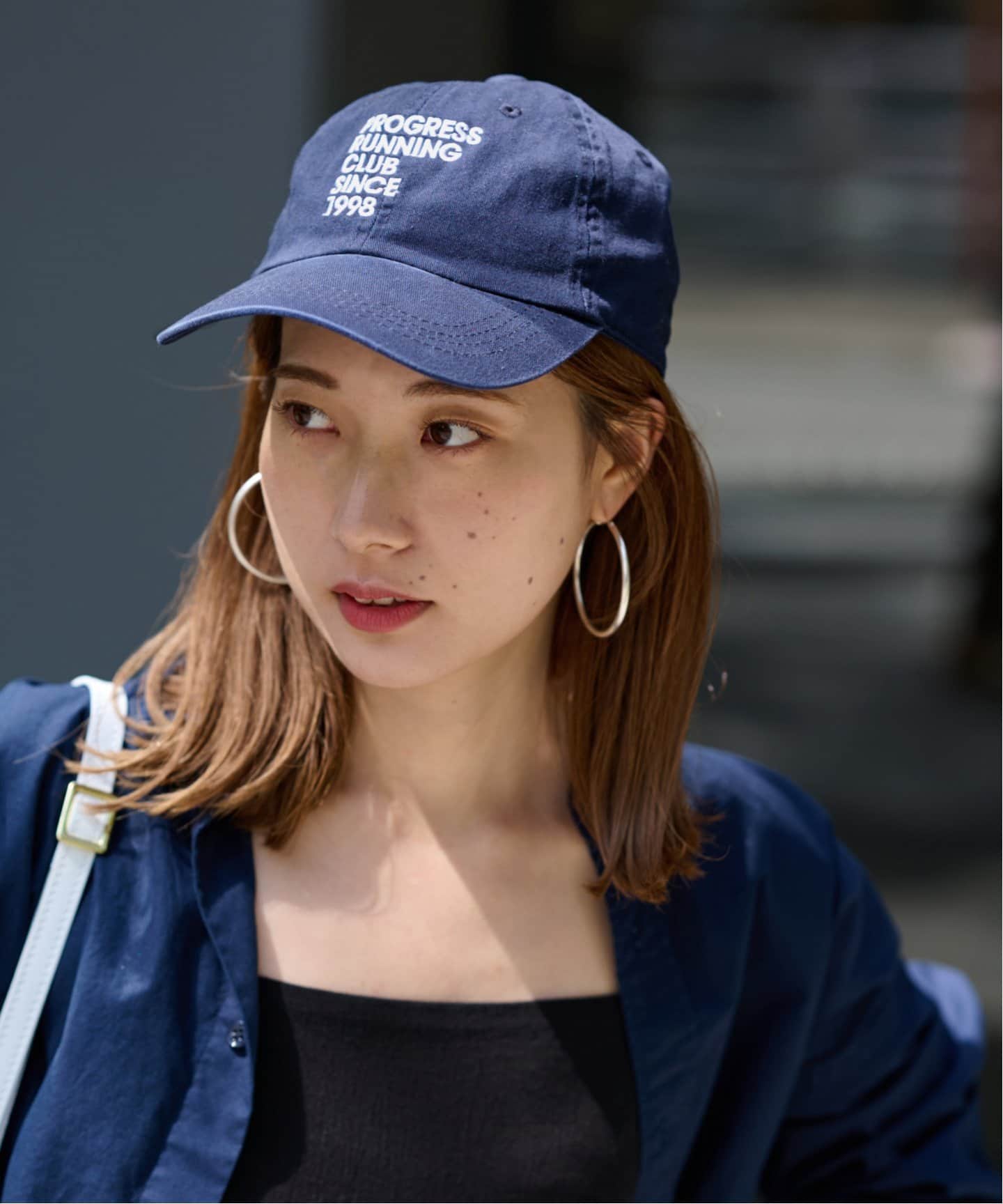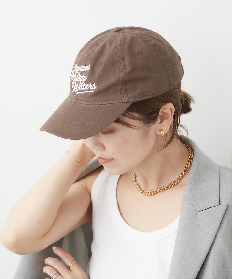 newhattanのSLOBE別注キャップは、ボディと刺繍を同色にすることで大人っぽい雰囲気に。ジャケットコーデの遊びに効くブラウンのハンサムキャップも注目。