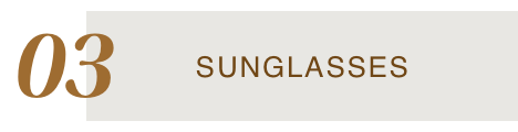 サングラスは暗めのブラウンのウェリントンなど、クラシカルなムードがカムバック。フレームは明るめのブラウンやクリアなグレーがほんのり洗練されたアクセントに◎。