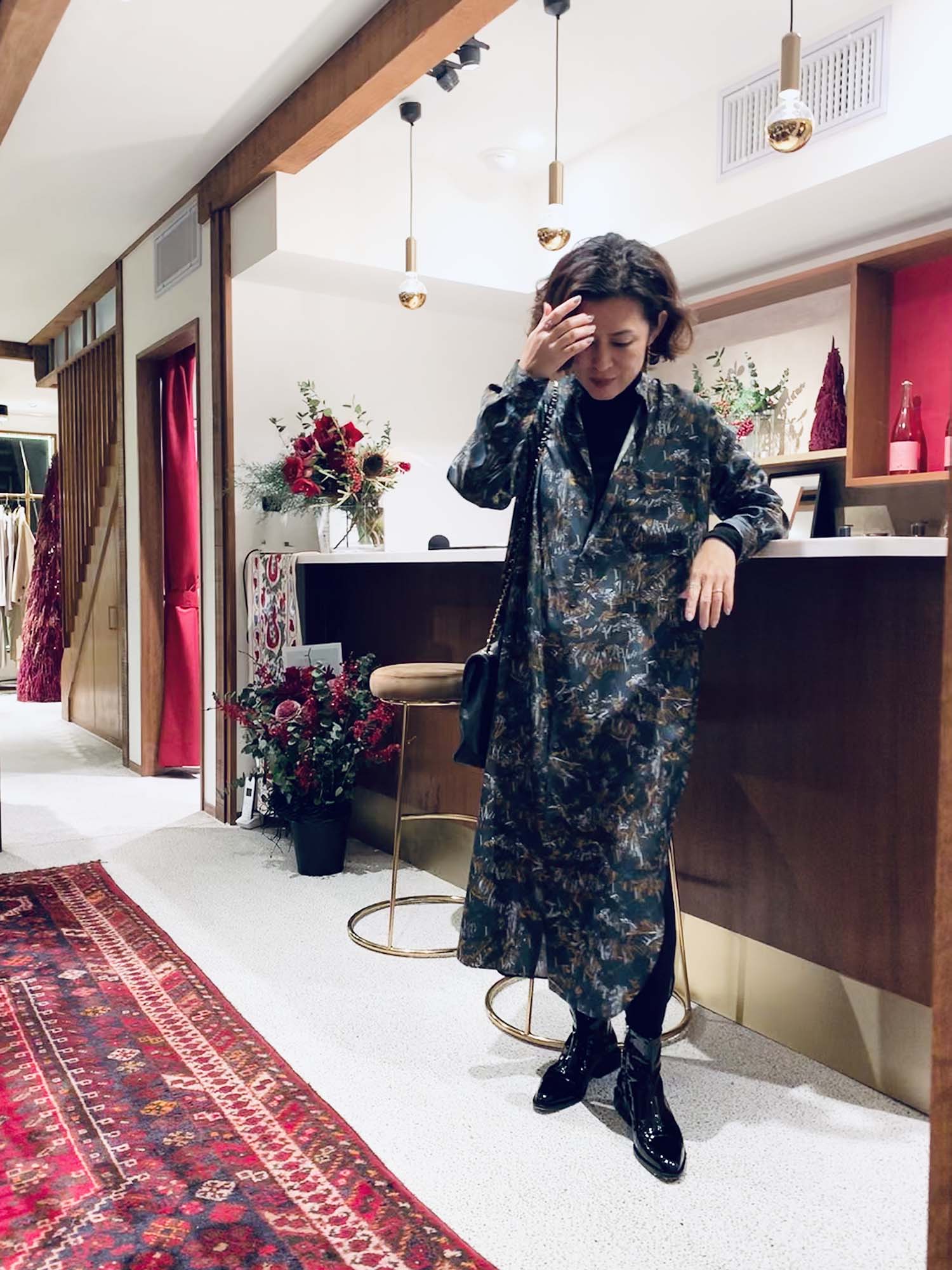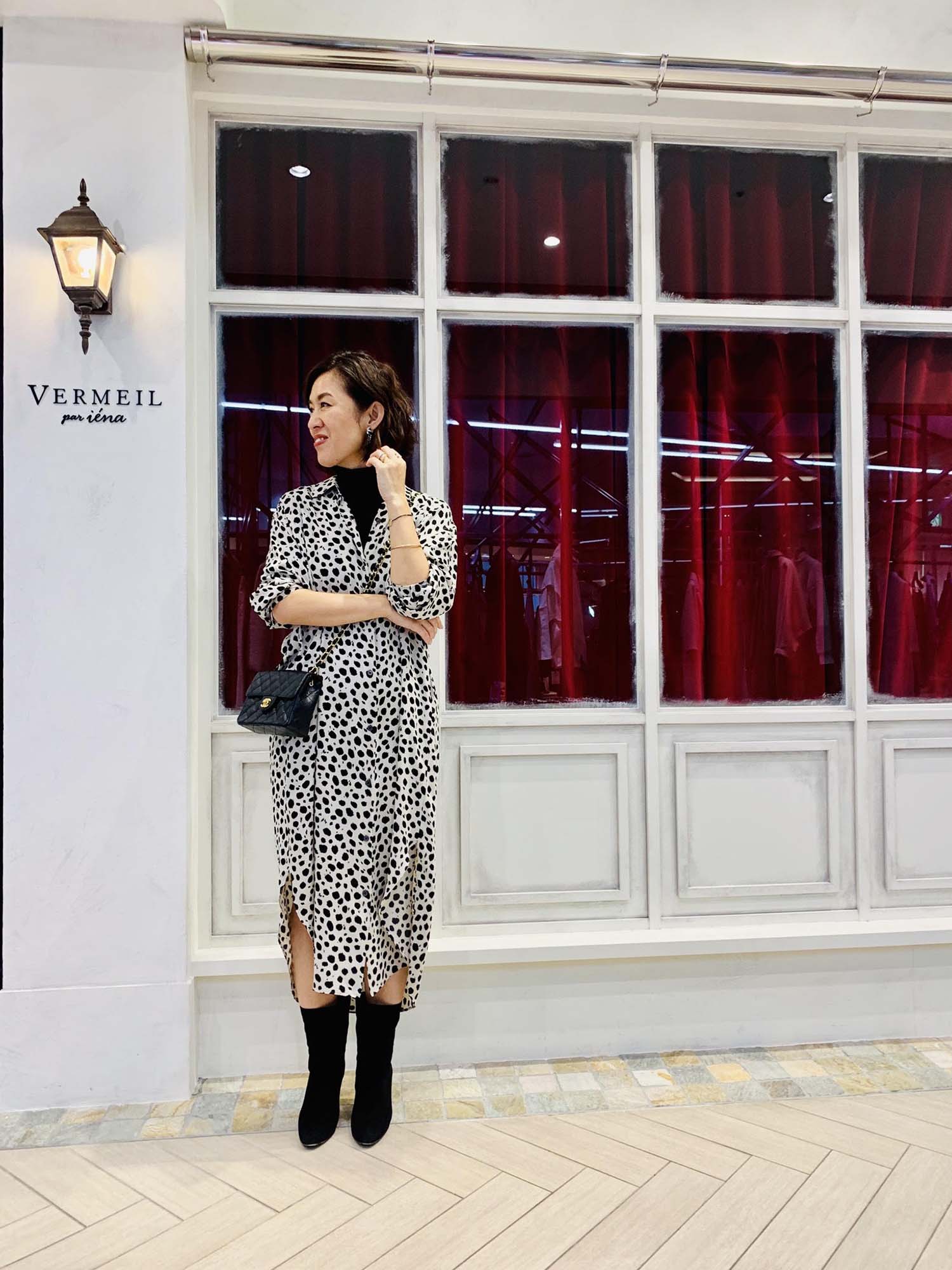 こんな気持ちを表すのは、やっぱりその日のファッションなんです。選んだのは、レオパード→ダルメシアンとも言う(笑) 柄のシャツワンピース。1枚でさらりと着ても、薄手のタートルネックニットをアンダーに合わせても。もちろん、前を全開にして軽めのコート代わりに。