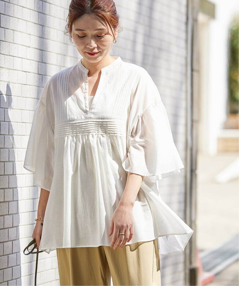 ほんのり甘い大人カジュアルふわりと印象的に広がるポンチョブラウスやリネンワンピース。ストレスフリーな軽さと女らしい甘さが同居した、今の気分にぴったりなサマーカジュアル。