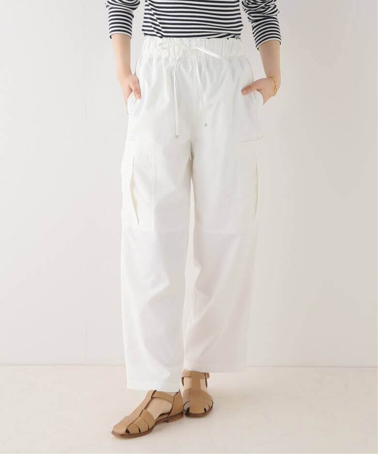 トレンドのカーゴが美シルエットで登場春のビッグトレンドの一つ、カーゴパンツ。IENAらしい、カジュアルすぎずフェミニンコーデと合うタイプライターカーゴパンツをレコメンド。透け感が気にならないのも◎。
