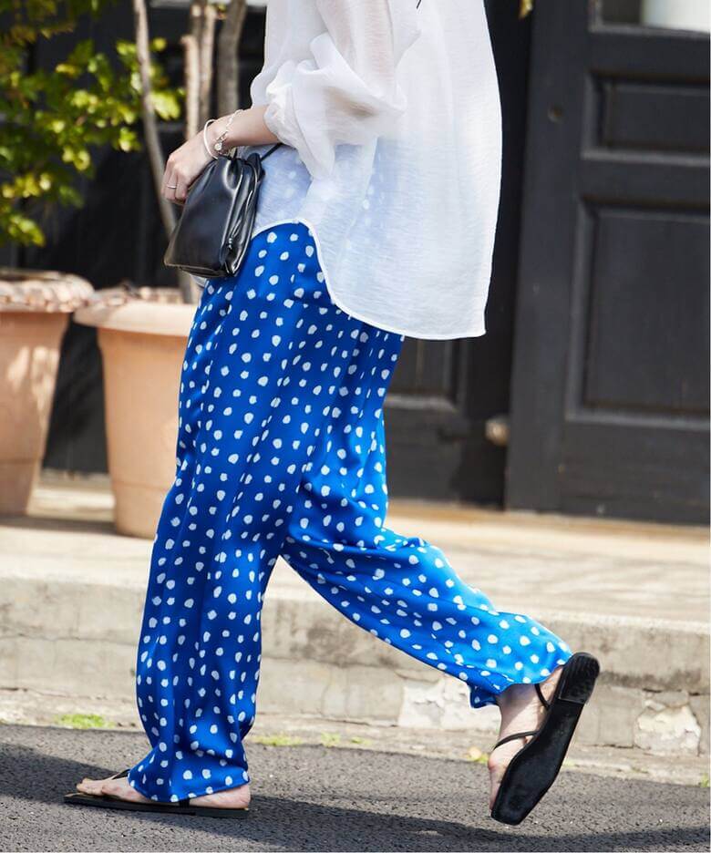 足取りが軽くなる華やかパンツ見た目にも着心地良く、遊び心も感じさせるドット柄イージーパンツや一点投入で映えるフラワーパンツが◎。気負わずデイリーにはけるのも嬉しいポイント。