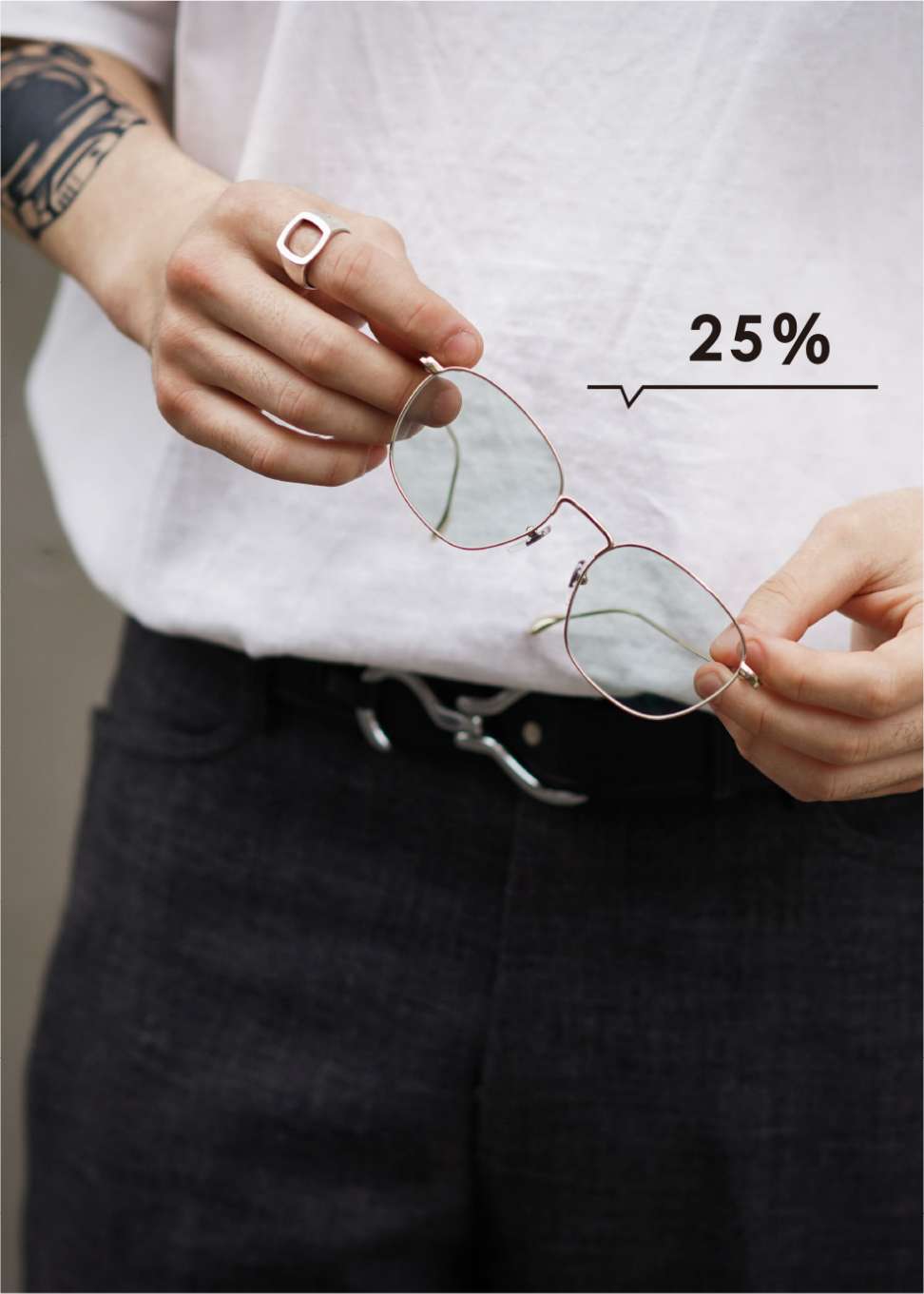 グレーはどんなスタイリングにも合わせやすく、最もまぶしさを抑える効果があります。¥13,200(TAX IN)