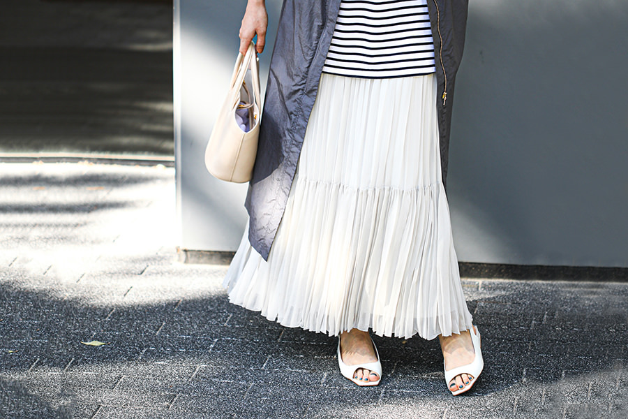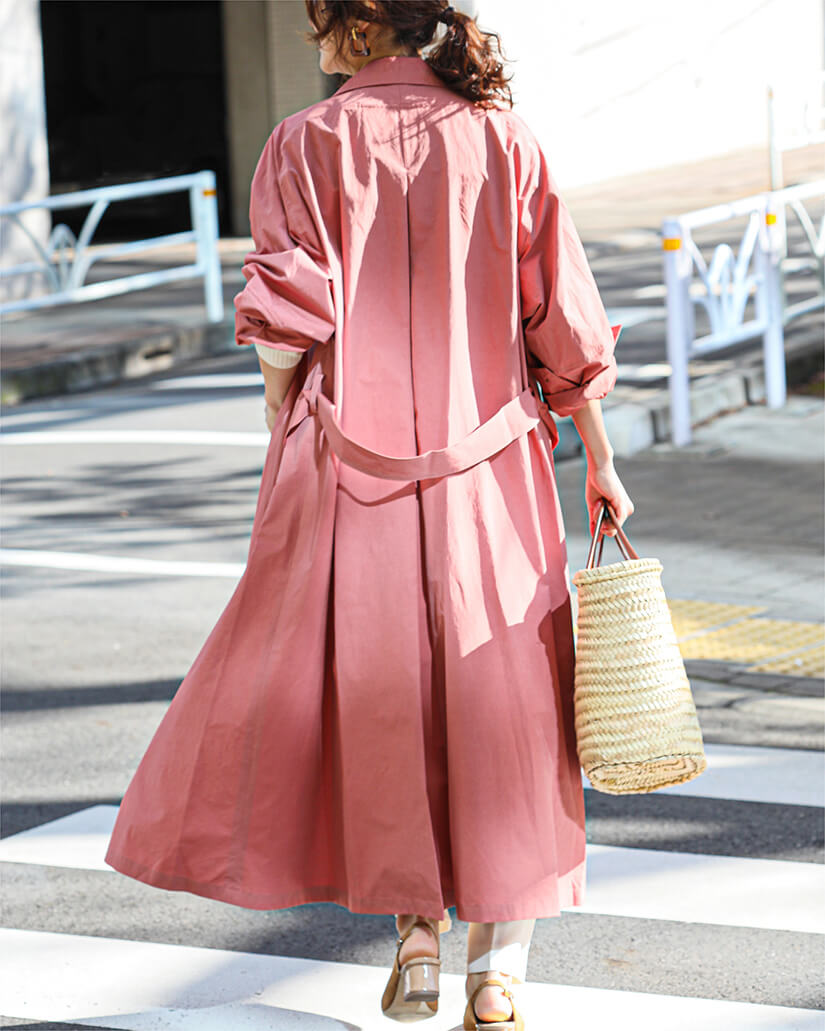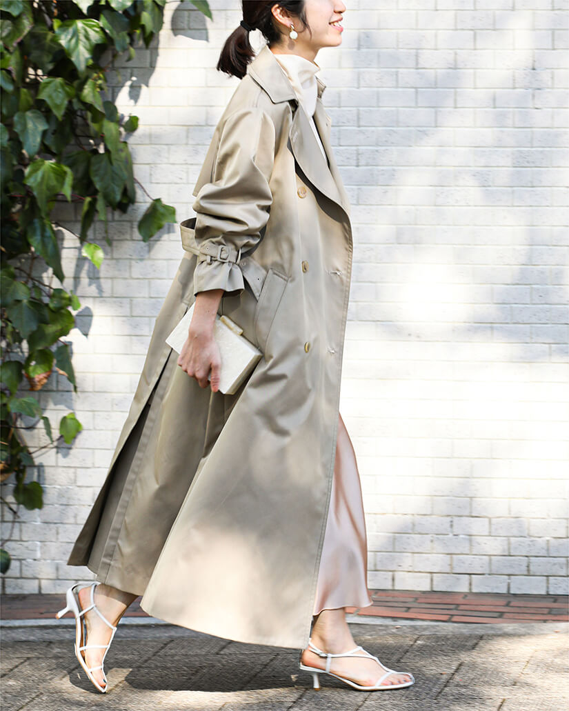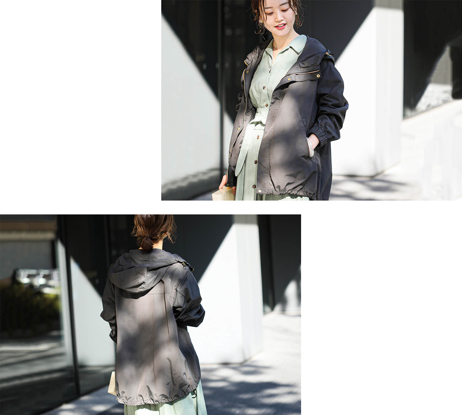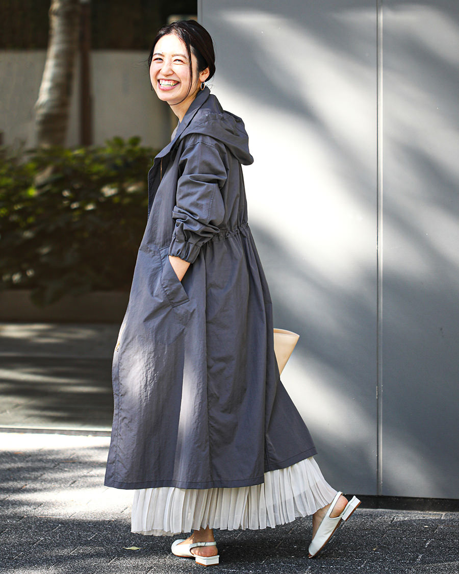 マキシスカートにも合わせやすいロング丈のナイロンコートが登場。