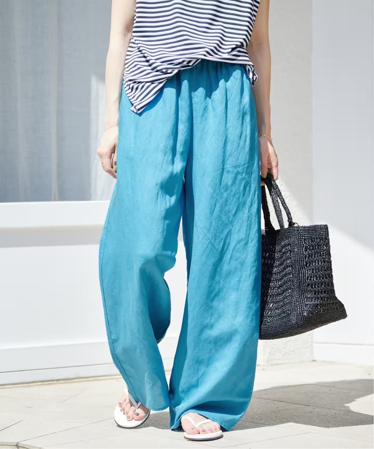 抜群に洒落るリネンパンツリネンワイドパンツは、旬なタック入りの美シルエットを選んで切れ味よく仕上げて。鮮やかなグリーンのカラーやキュロットデザインなどで個性を演出するのもグッド。