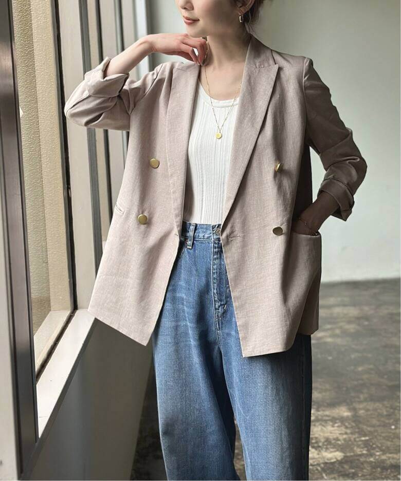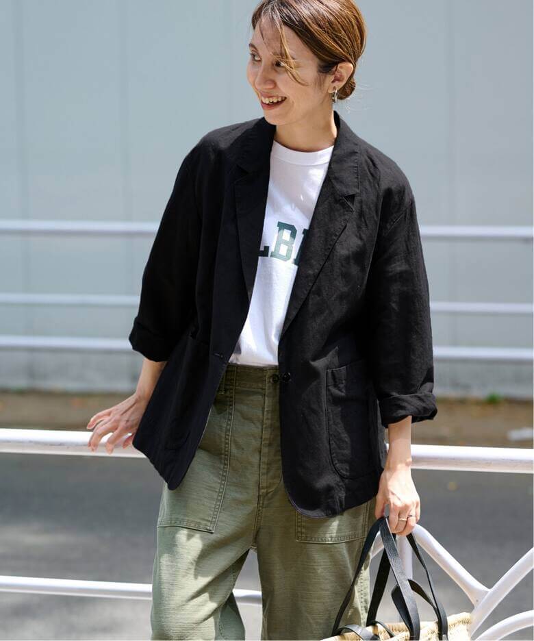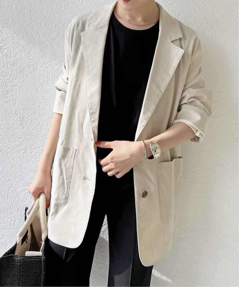 リネンで今どきなラフさを投入夏のオフィススタイルでもカジュアルスタイルでも着回せるリネンジャケット。かっちりしすぎないリラックスムードが今っぽい。タイトすぎないシルエットが狙い目。