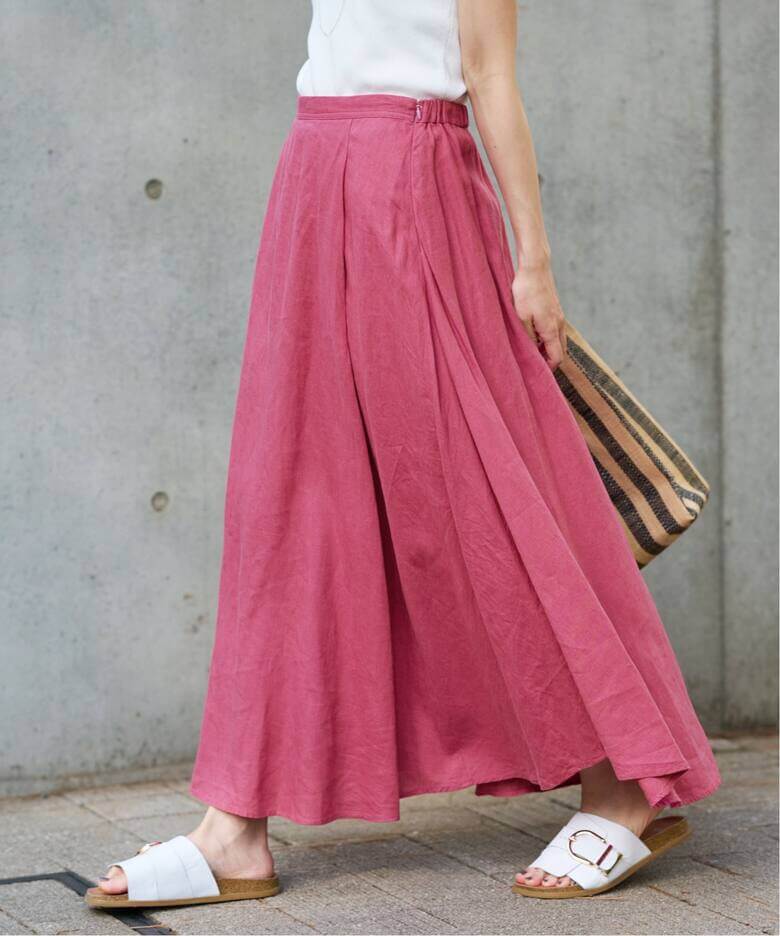 シワや風合いのある色がムードを醸すふわりと揺れるフレアからシャープなタイトまで、リネンスカートはスタイル豊富。シンプルにTシャツと合わせるだけで、ムードのあるフェミニンカジュアルが完成。