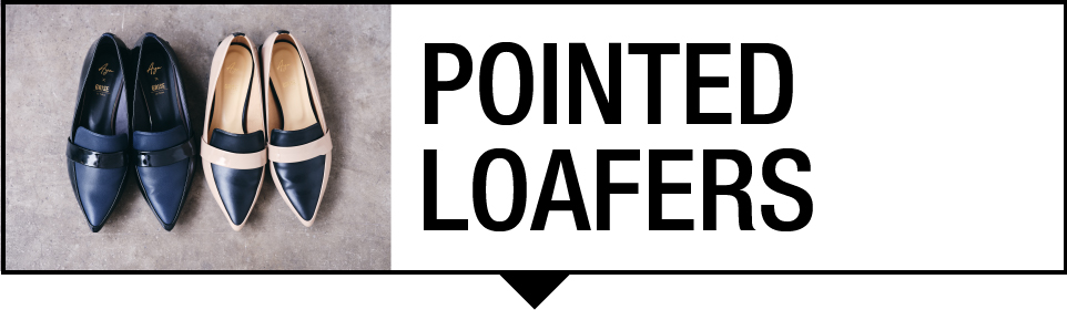 - シャープなポインテッドトゥ&スクエアの変形ヒールでエッジを効かせた大人の女性の為のモードなローファー。ヒールには程よい高さを残し、スタイルアップを叶える一足。カラーと素材のコンビネーションで変化をつけたブラックとベージュの2色展開。