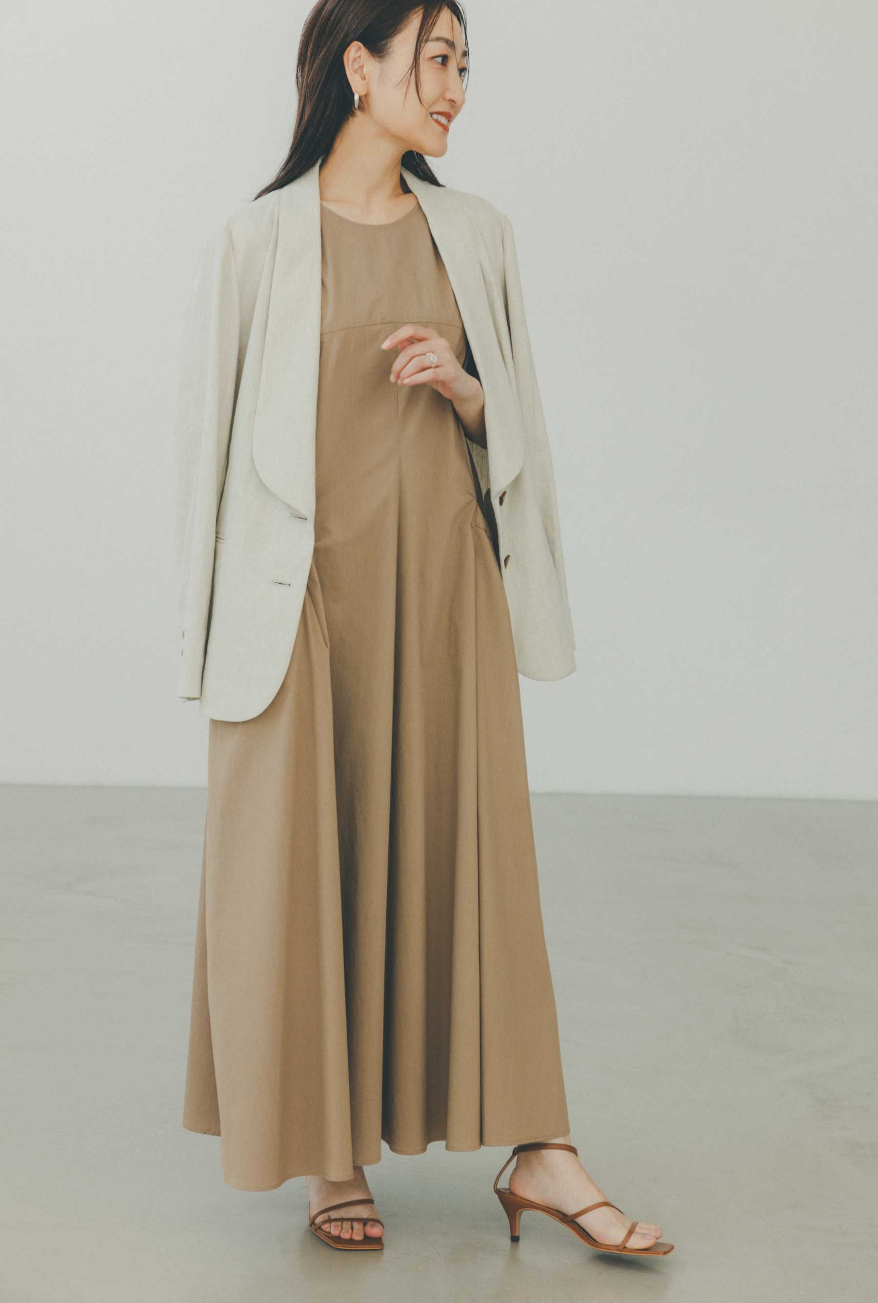 Instagram :@mtmaki「 shawl collar jacket 」「 dress 」私は⽢さのある服がちょっと苦⼿。ワンピースにもリラックス感のあるポケットをつけることでカジュアルに落とし込んで、⾃分に引き寄せます。シワになりにくい軽やかな⽣地をたっぷりと使⽤した分量感のあるラインは、街でもこの夏のリゾート先でも楽しんでもらいたい⼀着。⼤⼈の肌⾒せが叶うバックスタイルもポイントです