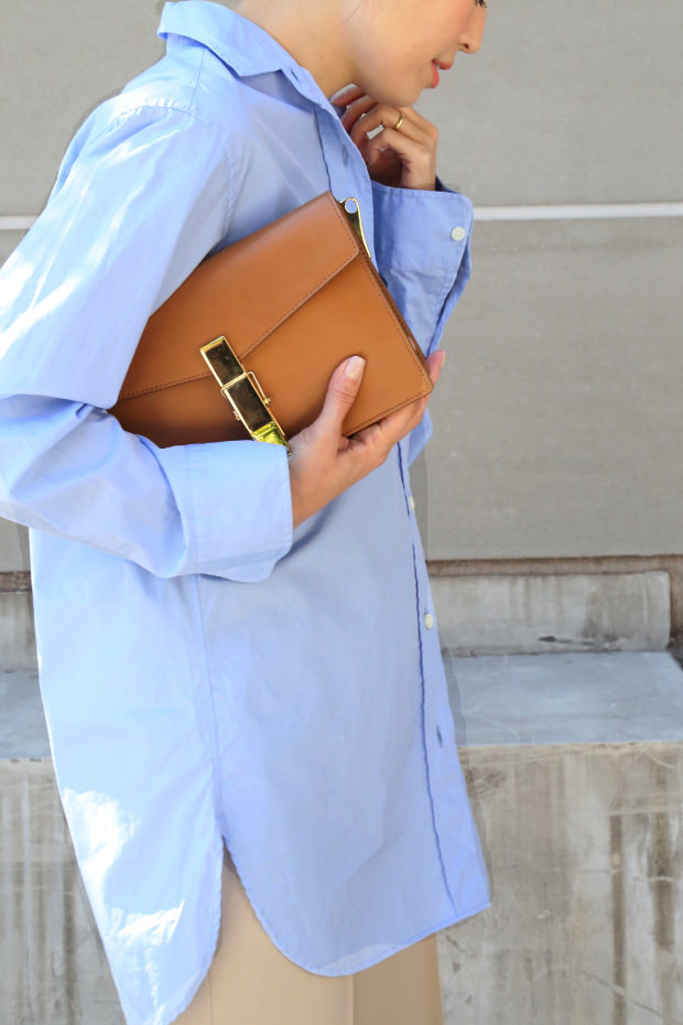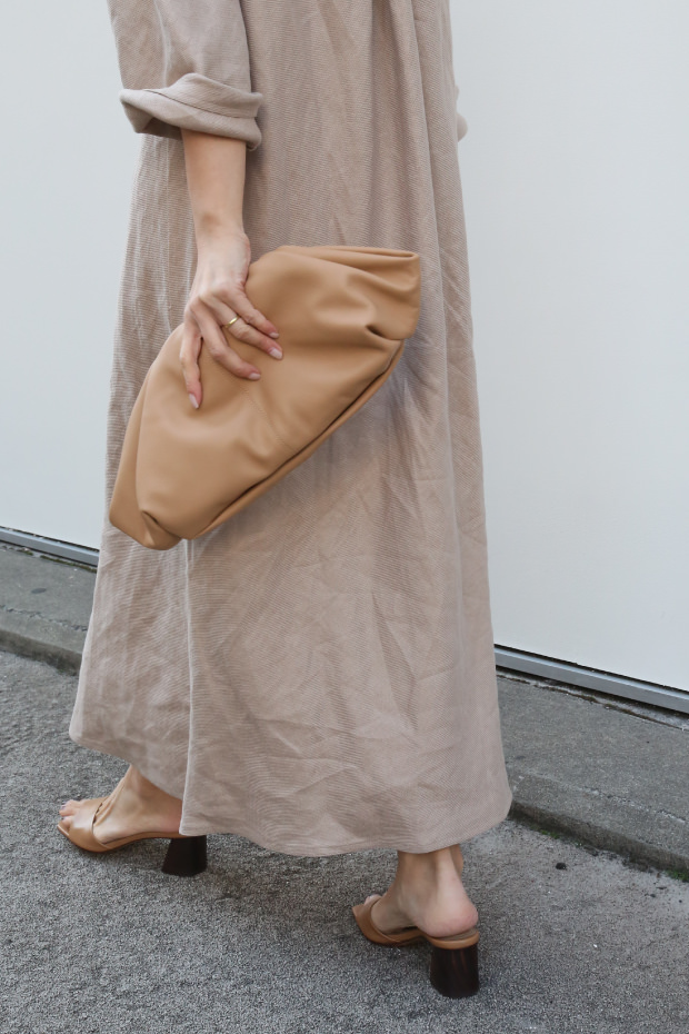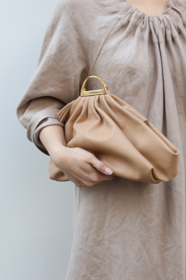 インテリア業界で経験を積んだデザイナーならではの建築的なシルエットが特徴的なブランド。キレイめにもカジュアルにも。これさえ持てば旬なスタイリングが完成するクラッチバック。
