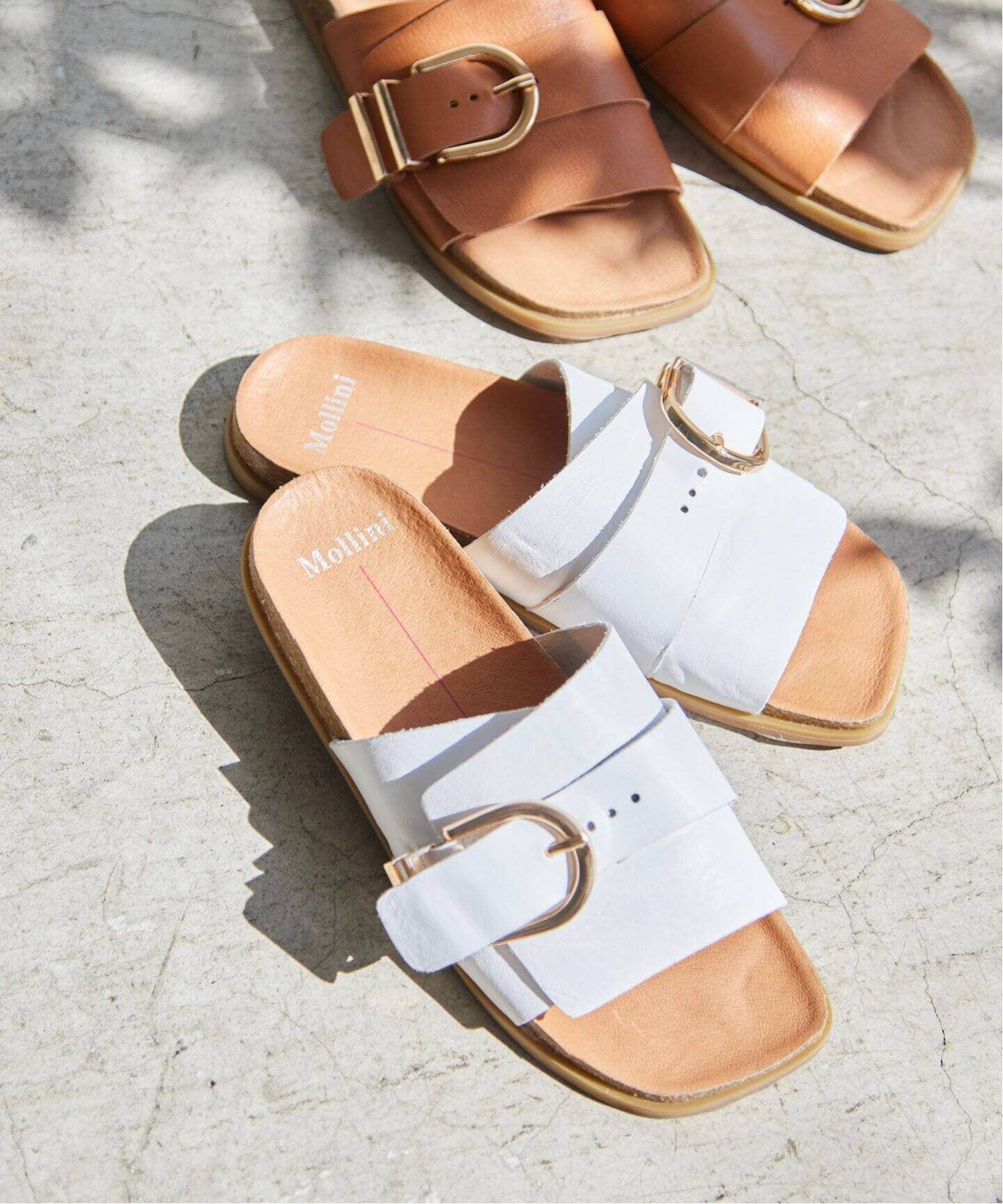 オンオフ兼用できる安定感上品なカラーのブラウンなら、カジュアルシーンだけでなくオンの装いにもOK。LE TALONのストラップサンダルやダブルストラップミュールは、モードさとモダンさが同時に叶う最旬デザイン。