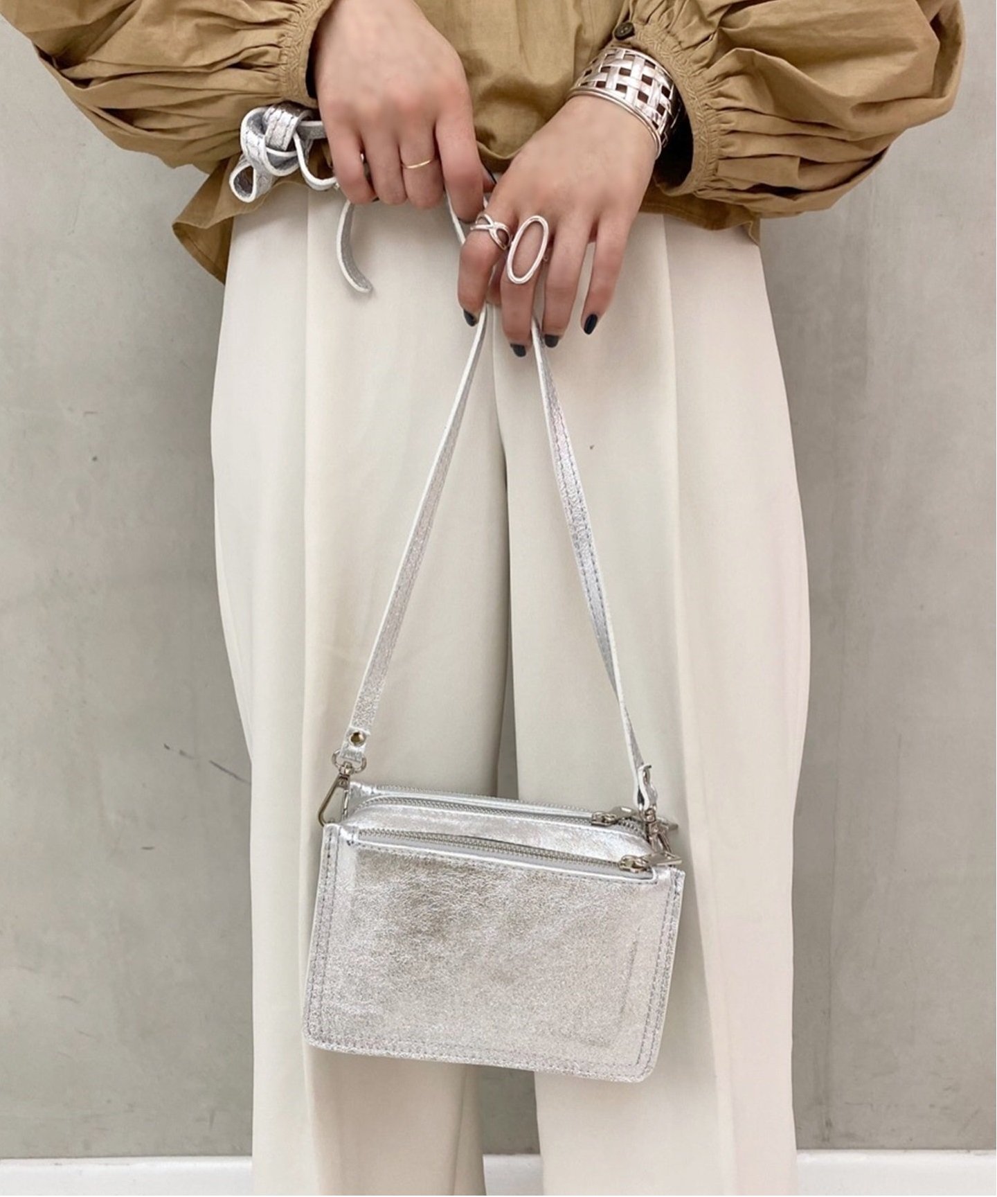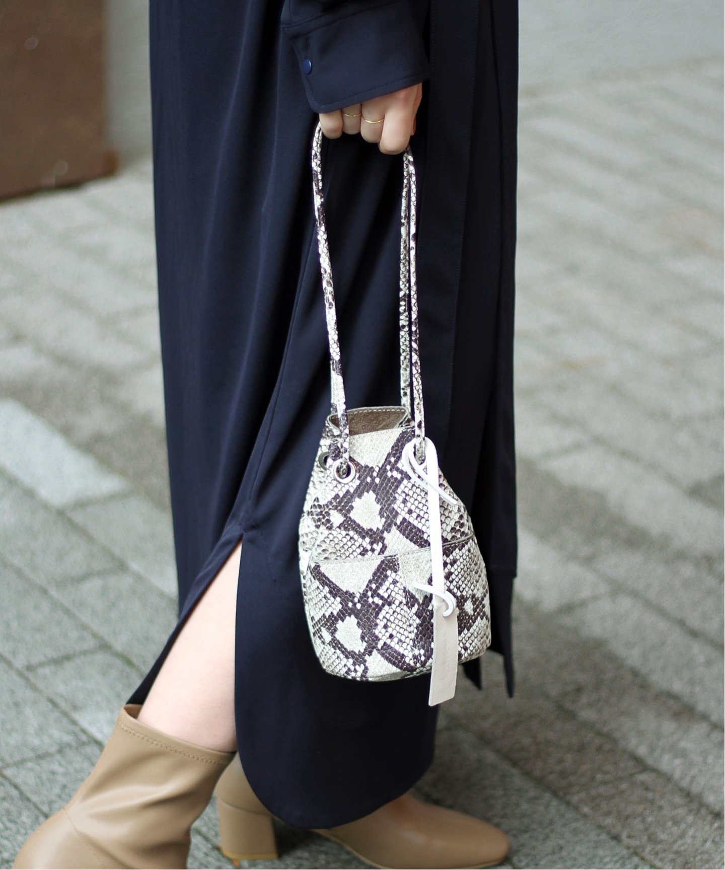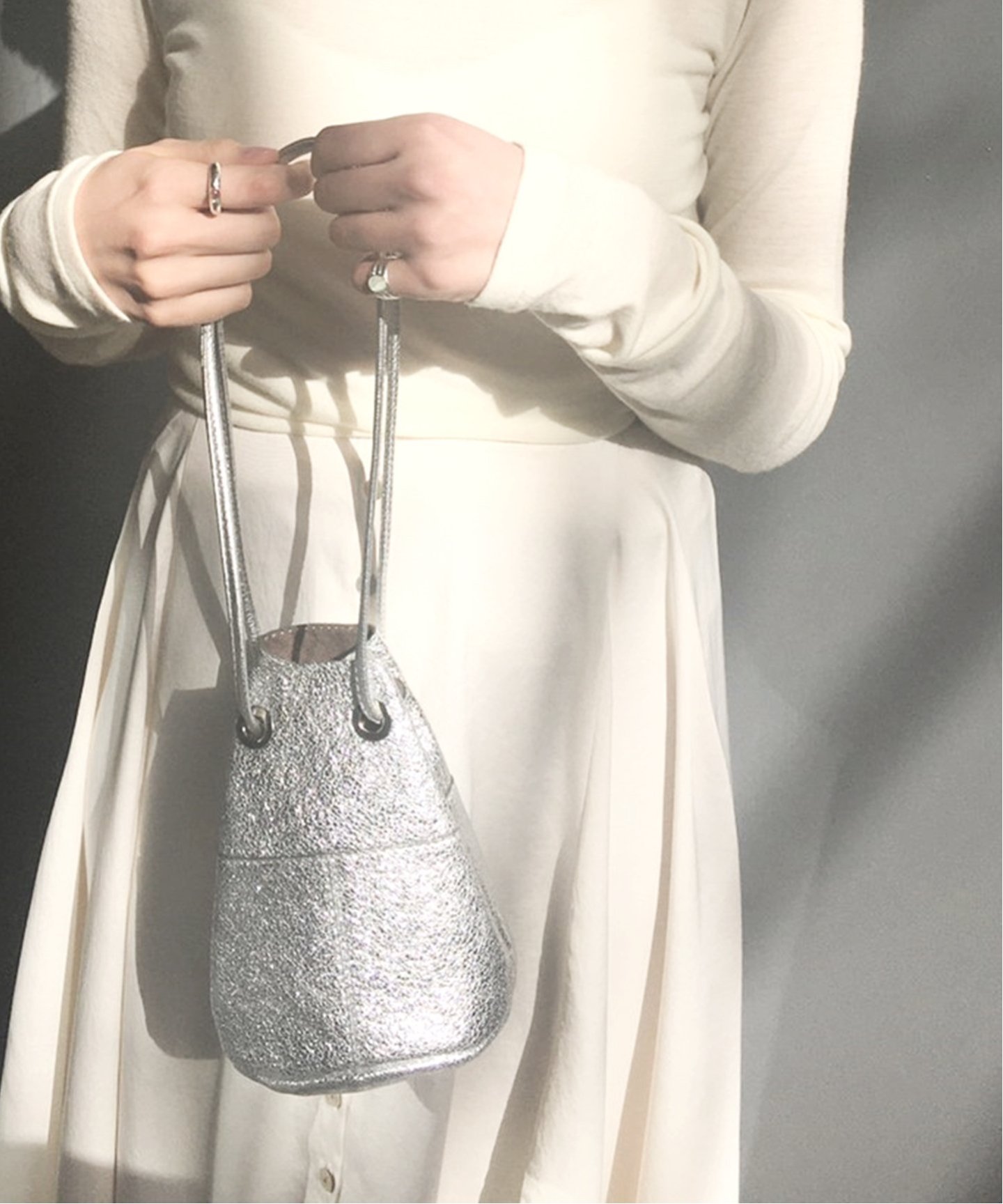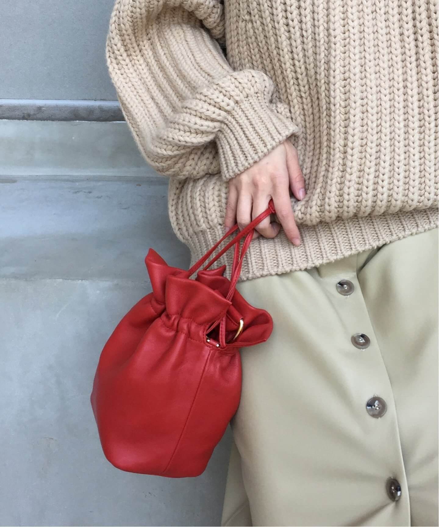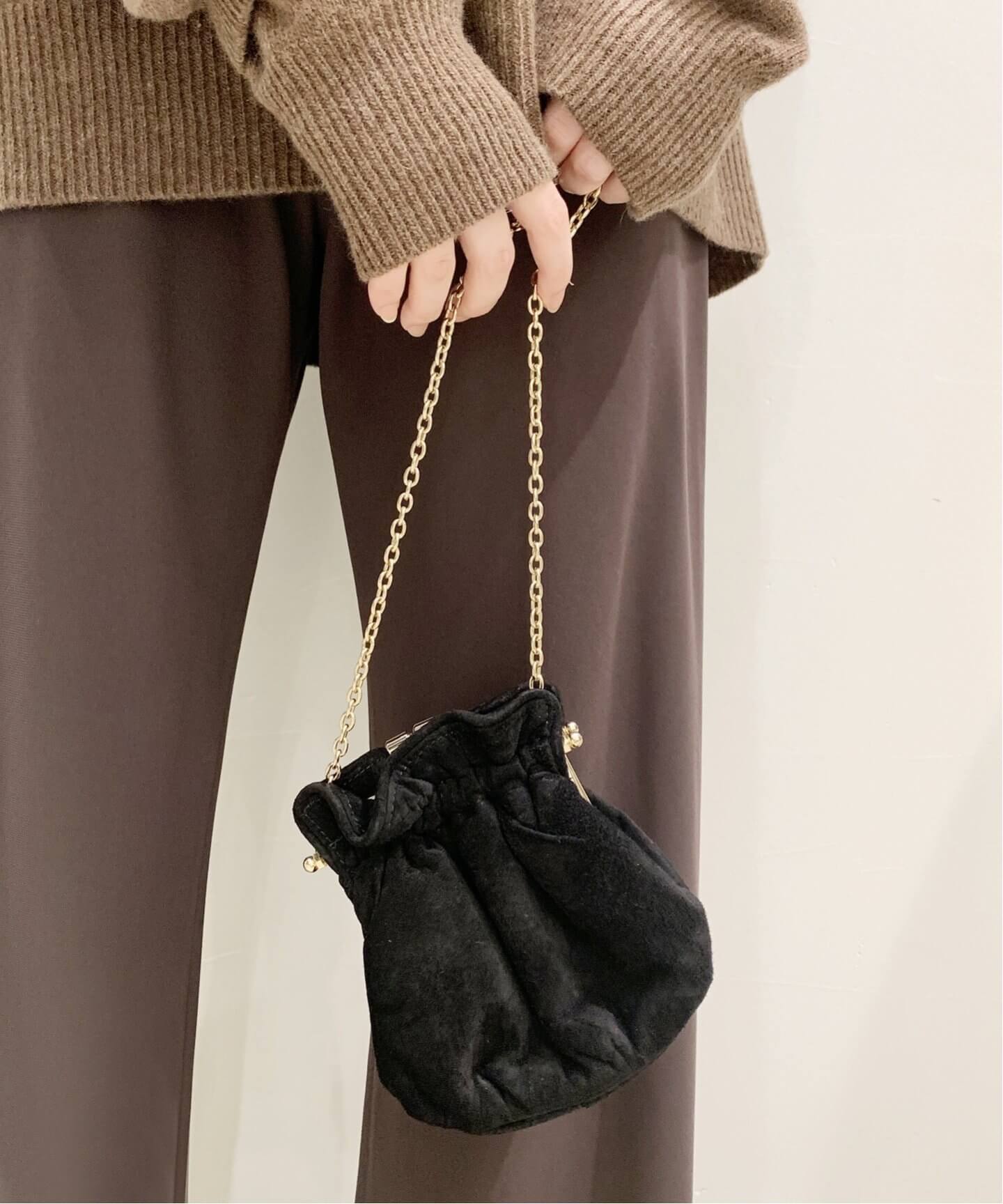 コーデのワンポイントに光るミニ巾着バッグで、