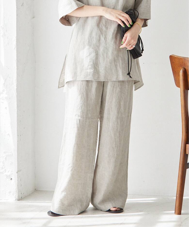 モダンなリネンパンツ夏パンツの代表素材であるリネン。ほっこりしたりリゾートムードが強くなったりしない、シュッと見えする落ち感ストレートが狙い目。JOURNAL STANDARDはギャザーをたっぷり寄せた着映えデザインも。
