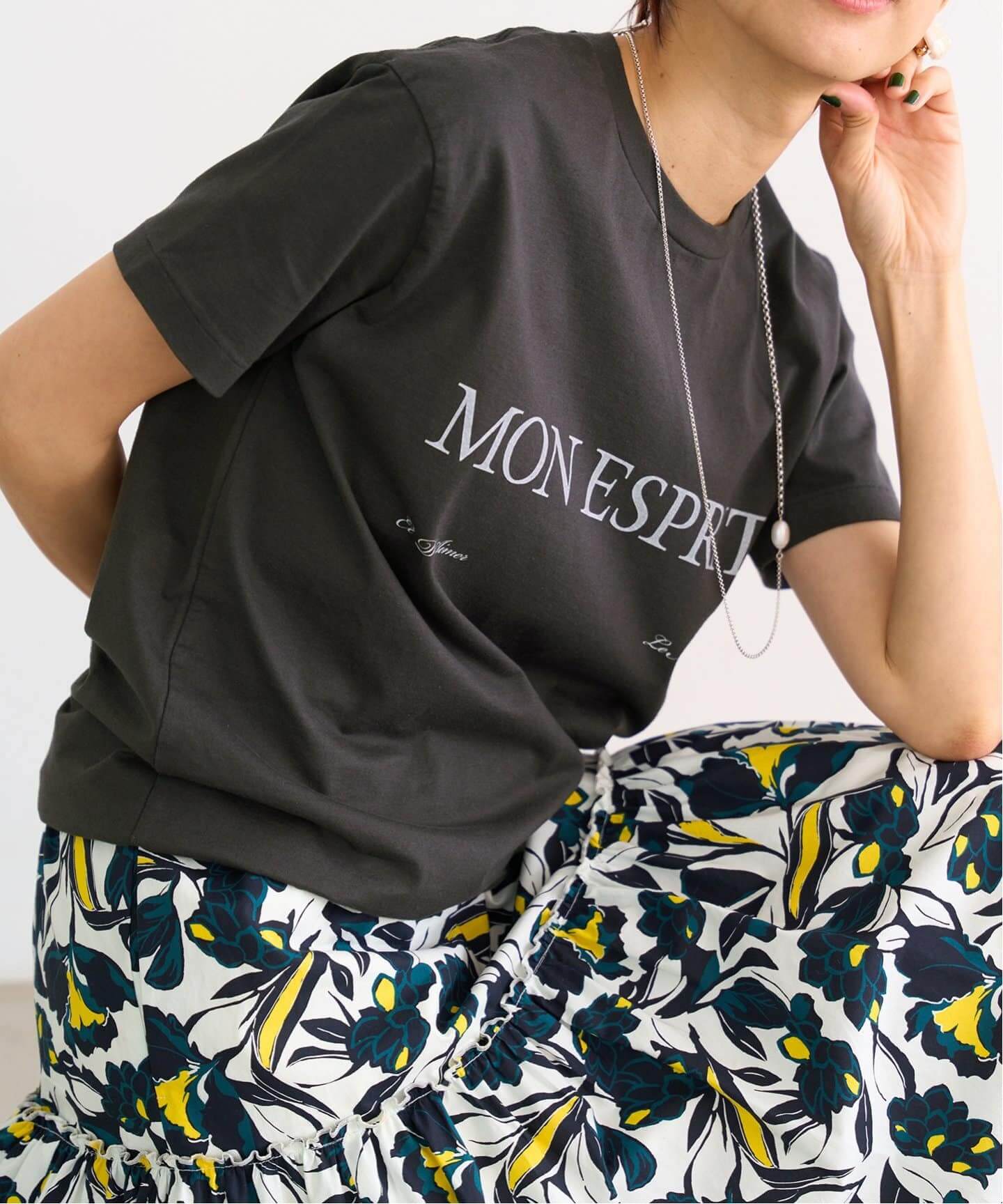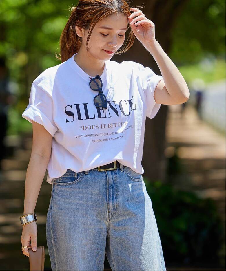 ロゴTシャツフットボールTシャツが豊作なこの夏は、FRAMeWORKのYALEといった大人っぽいヴィンテージライクな1枚をストックして。IENAのロゴTは、上品なフォントが甘スカートとも相性抜群。