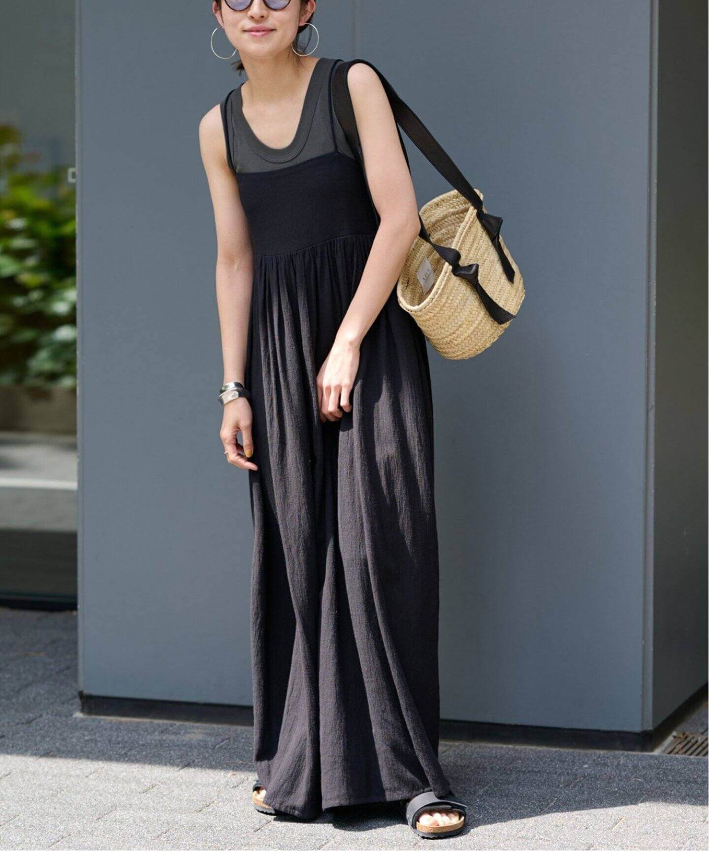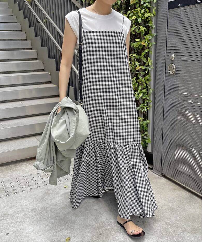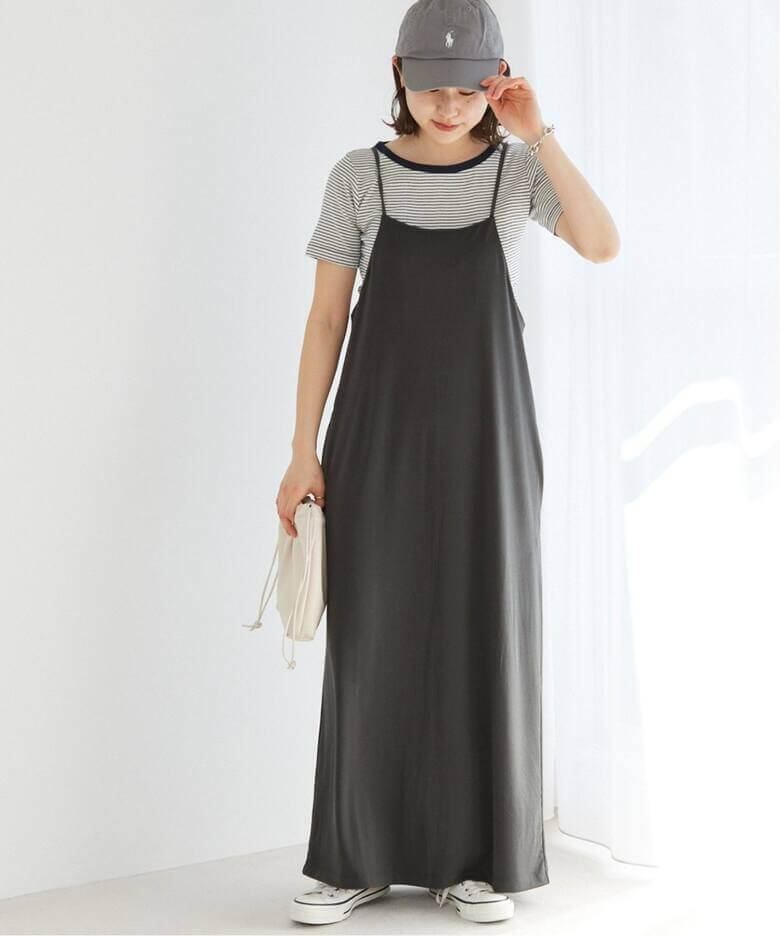 リラクシーな揺れシルエットロゴTシャツをインしたり、今年らしいヘルシーなアメスリタンクトップをインしたりと着回し力が高いキャミソールワンピース。とろみのある生地のフレアシルエットを選んで、印象に残る揺れ感を楽しんで。