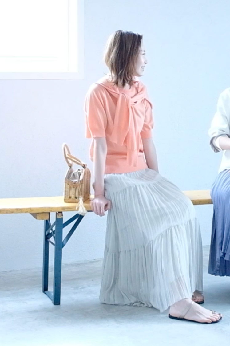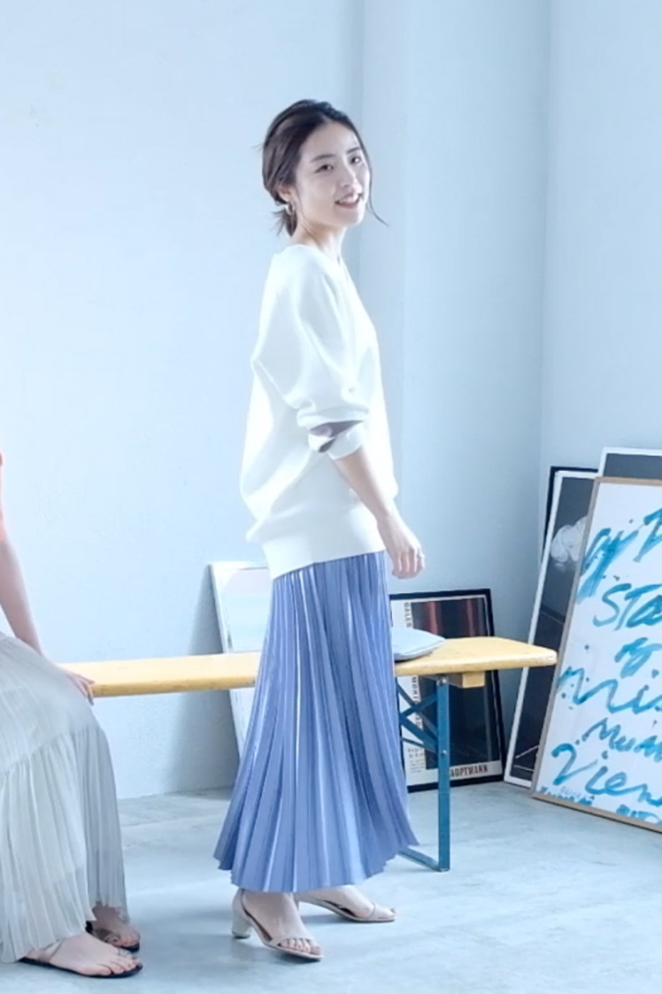 - 動くたびに印象的に揺れる春スカートは今シーズンのマストバイ。ロマンティックなサテンのプリーツスカートを、ヘルシーなフーディなど辛めのアイテムと合わせて今っぽくハズして。