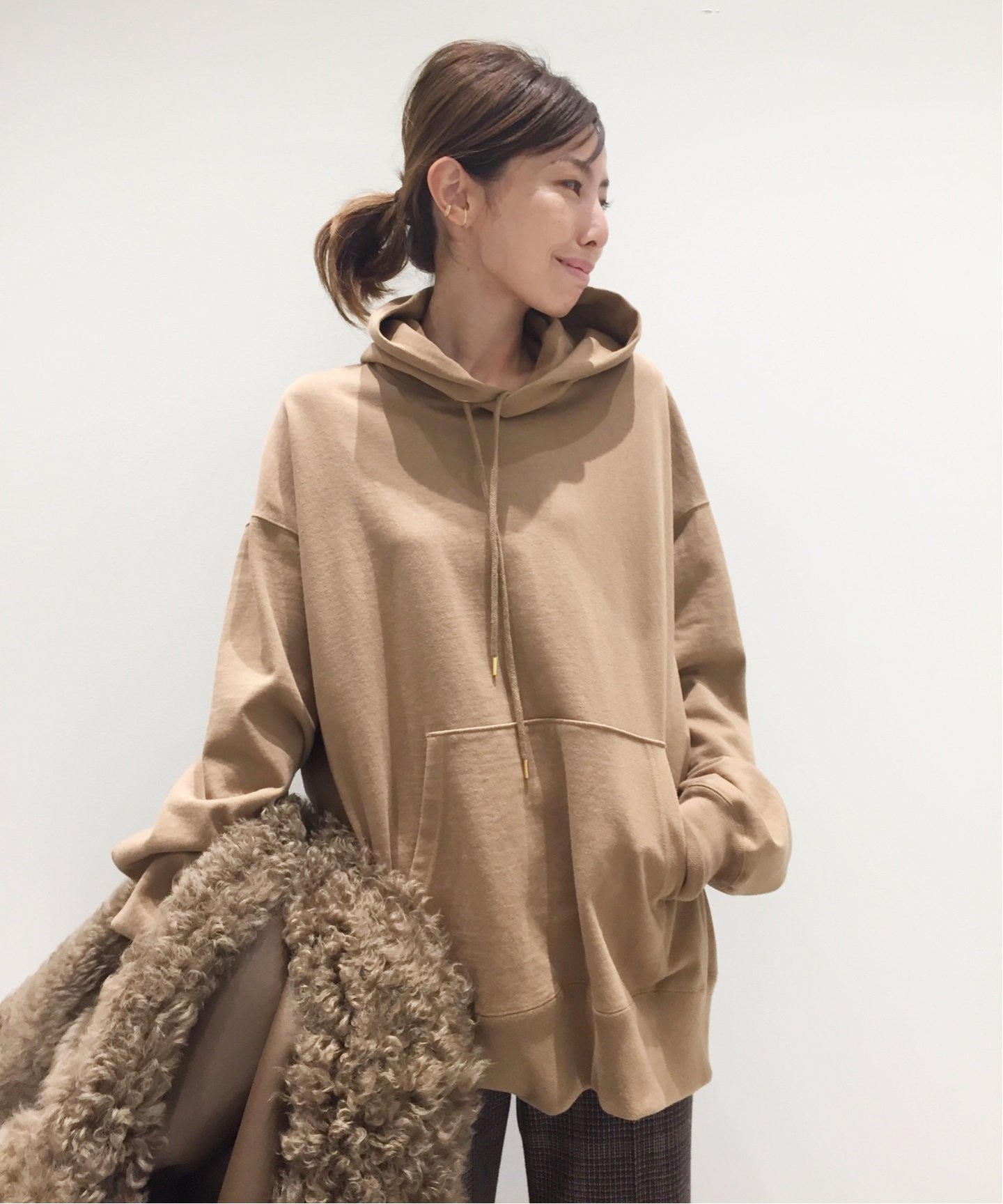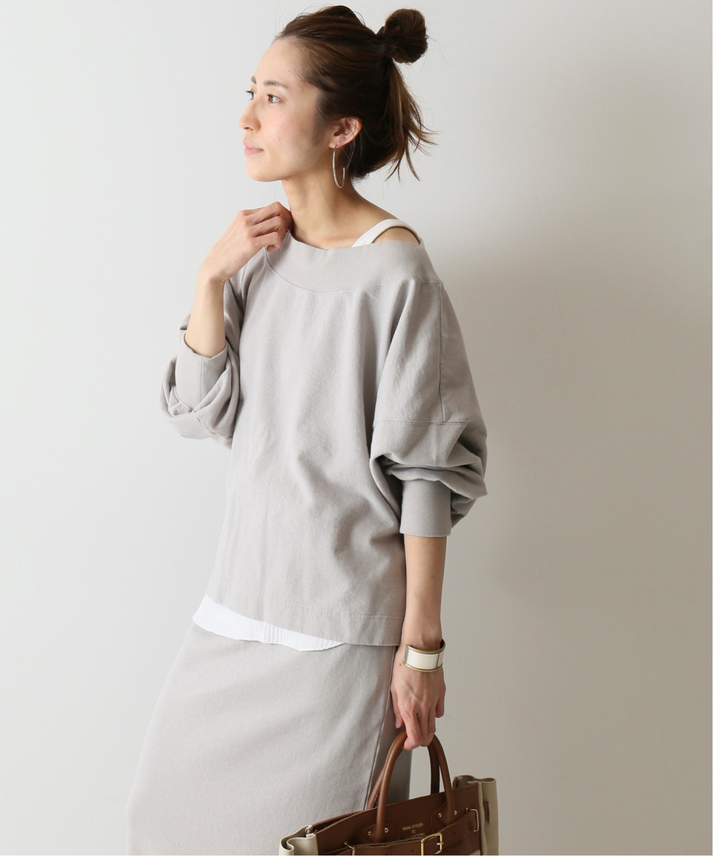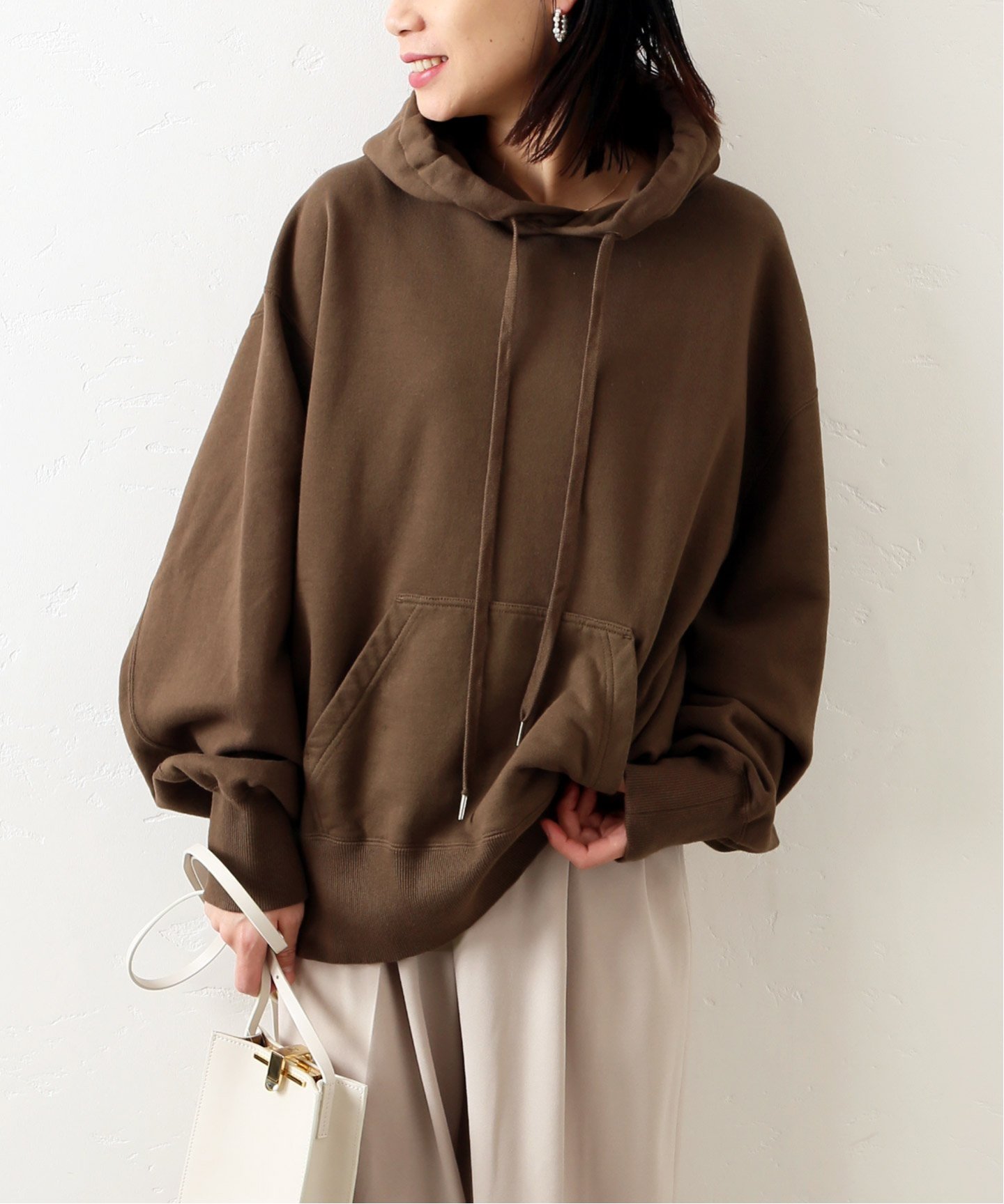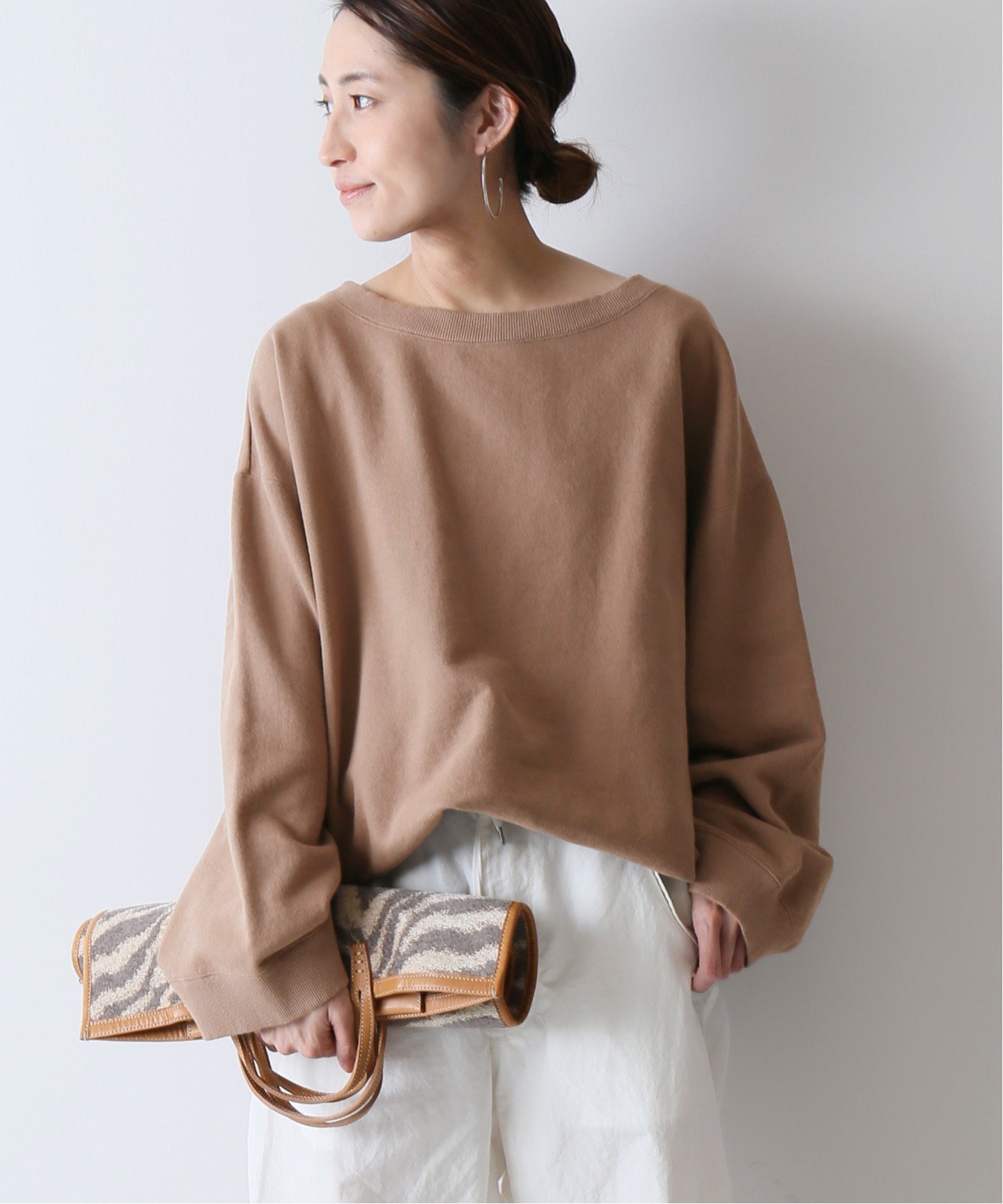 今っぽい抜け感を演出スウェットなのに上品にまとまる、