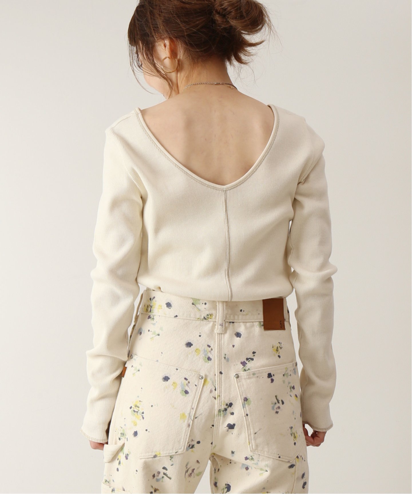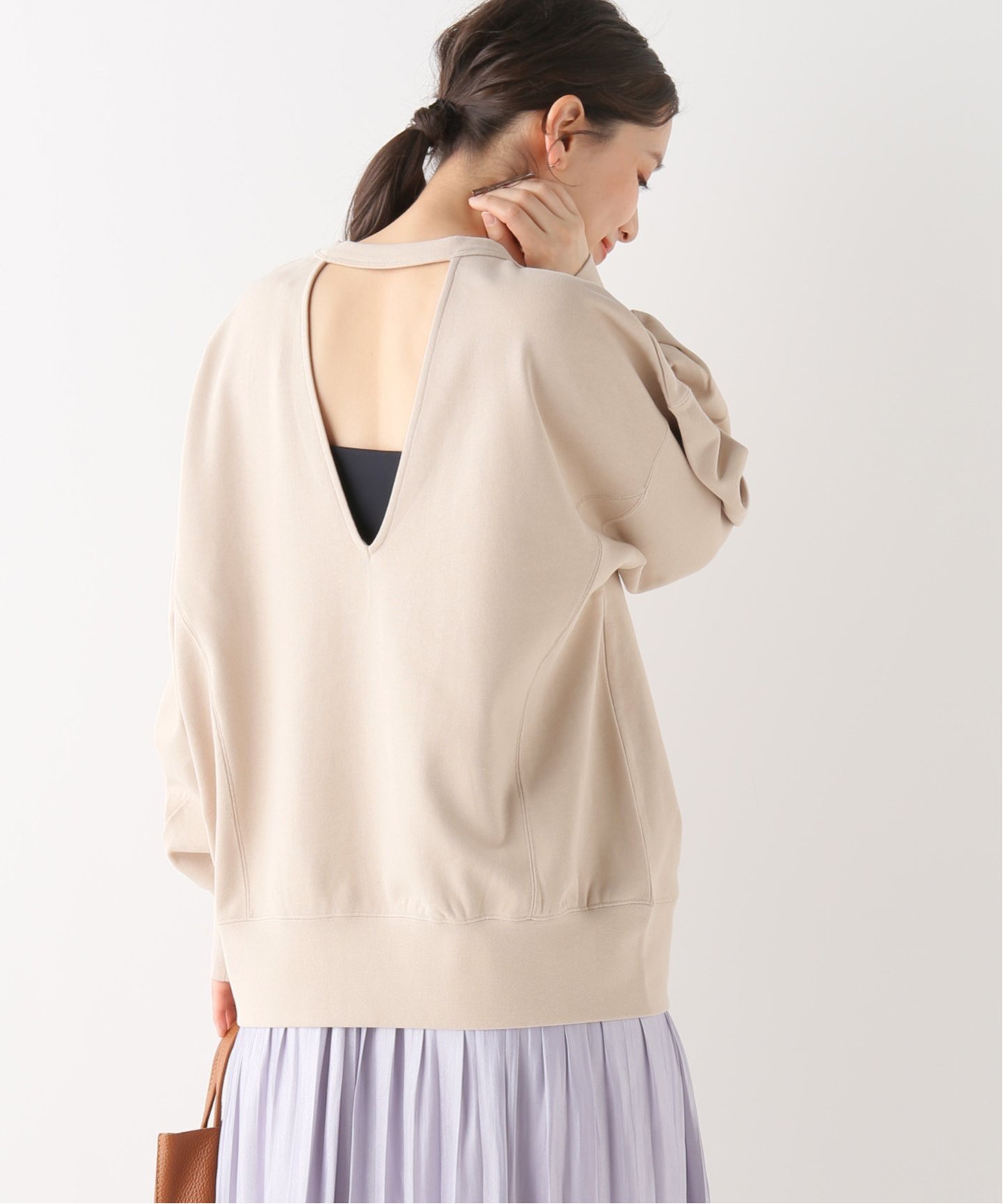 ほどよく抜け感のある首回りが女性らしさも醸し出します。