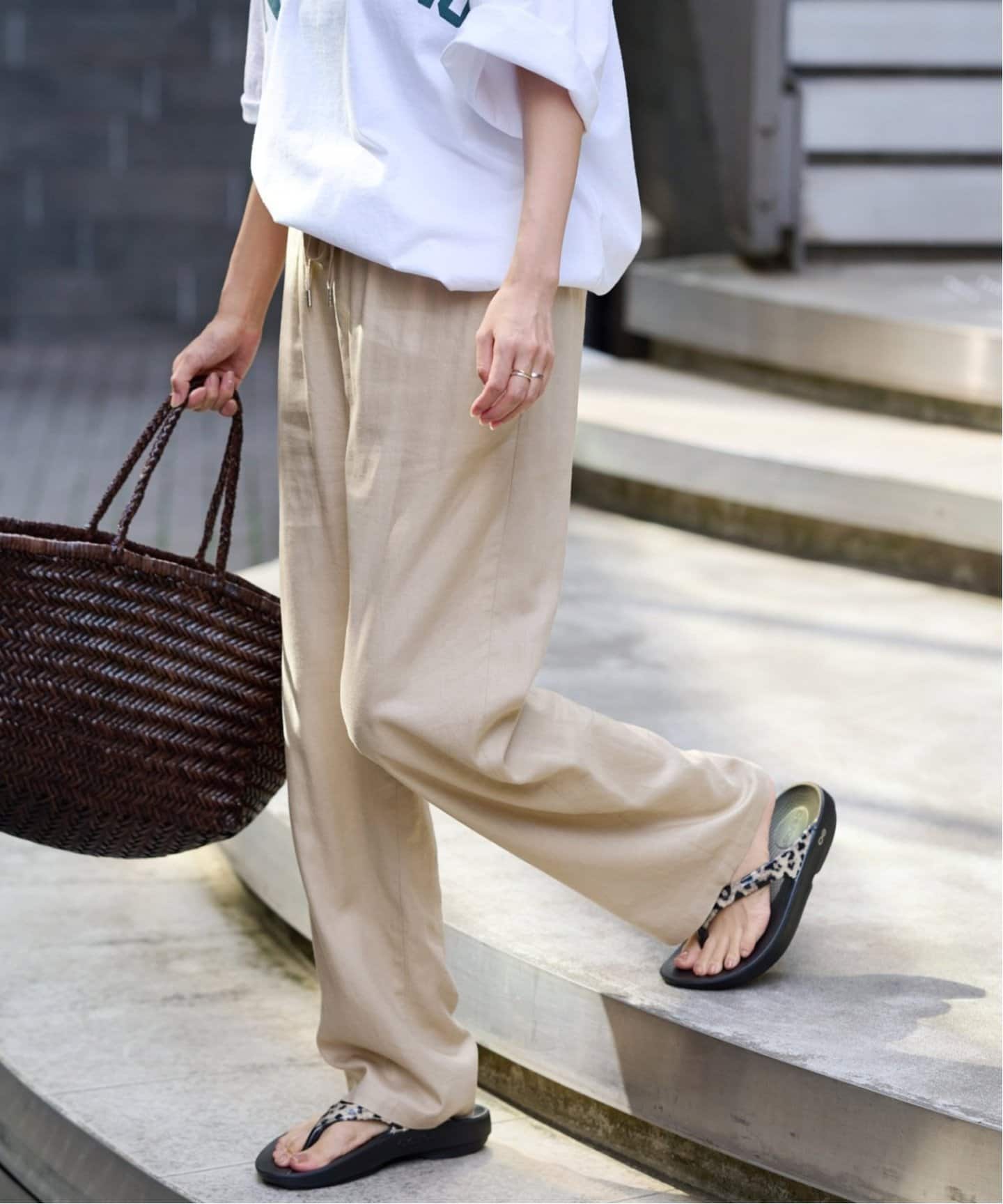 “清涼感”&“楽だけどきちんと見え”夏の定番ボトムスであるリネン混のパンツは、センタープレスが入ったキレイ見えするデザインがヒット。ウエストゴムのイージーな着心地だけど、どこかにきちんと感が漂うハンサムパンツが人気。