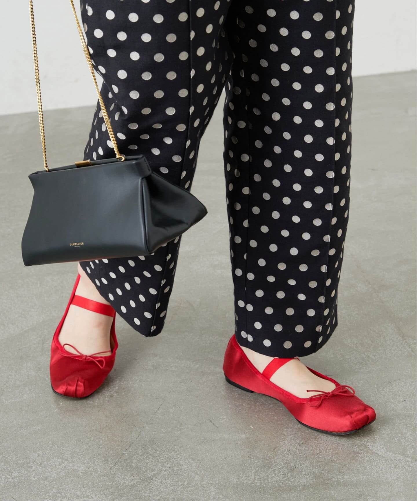 秋まで使える素材を賢く取り入れて今から秋まで長く着られる、クラッシュベロアスカートやコーデュロイオーバーオールが登場。シューズも、上品に輝くサテン素材のレッドバレエでコーデ全体をクラシカルにアップデートして。